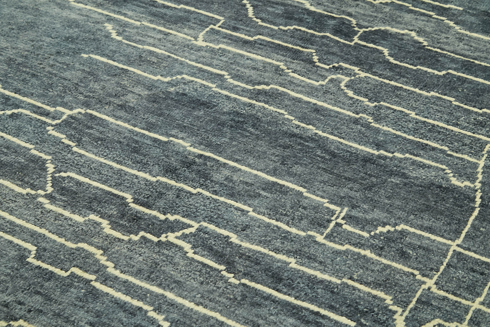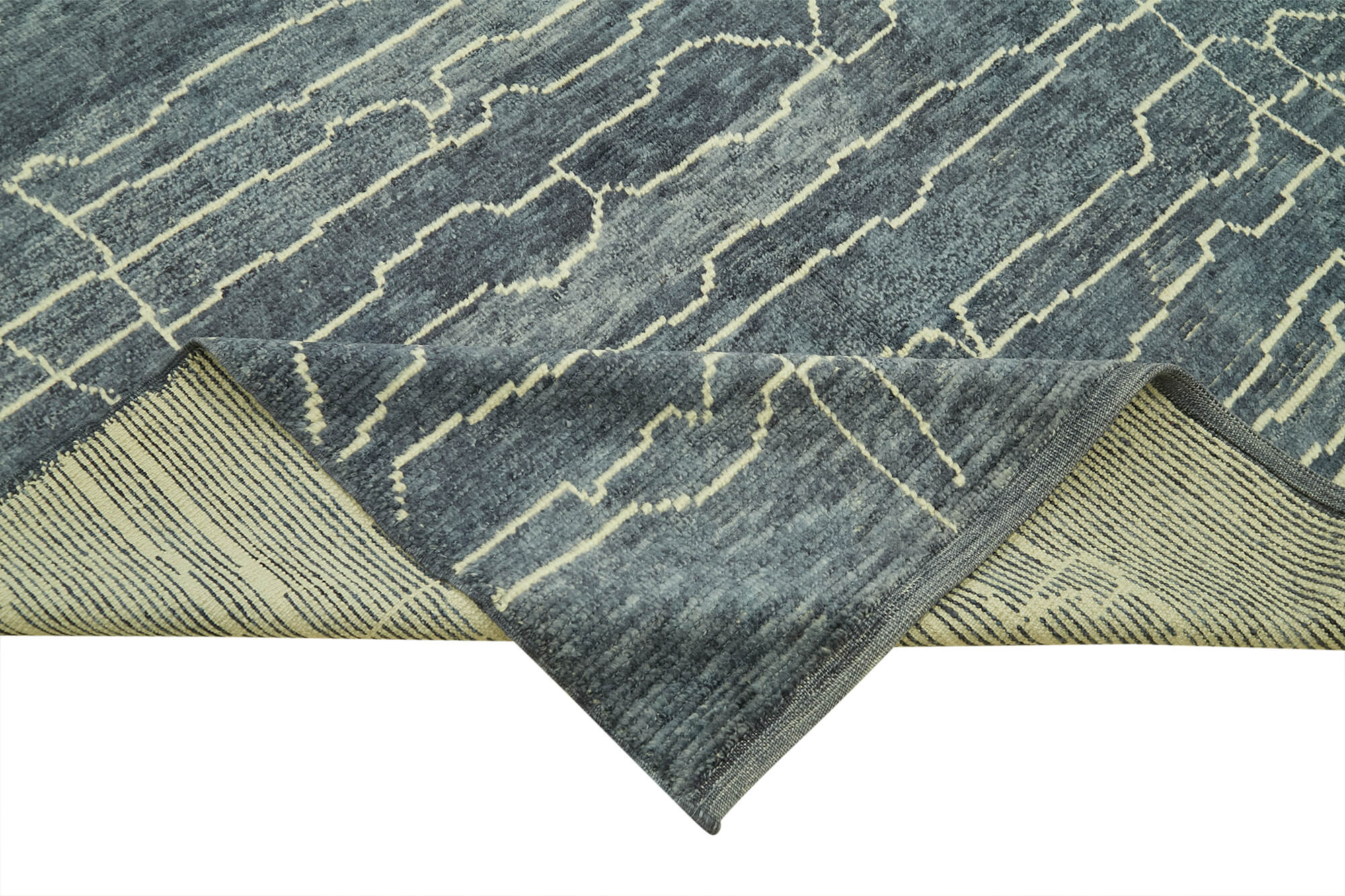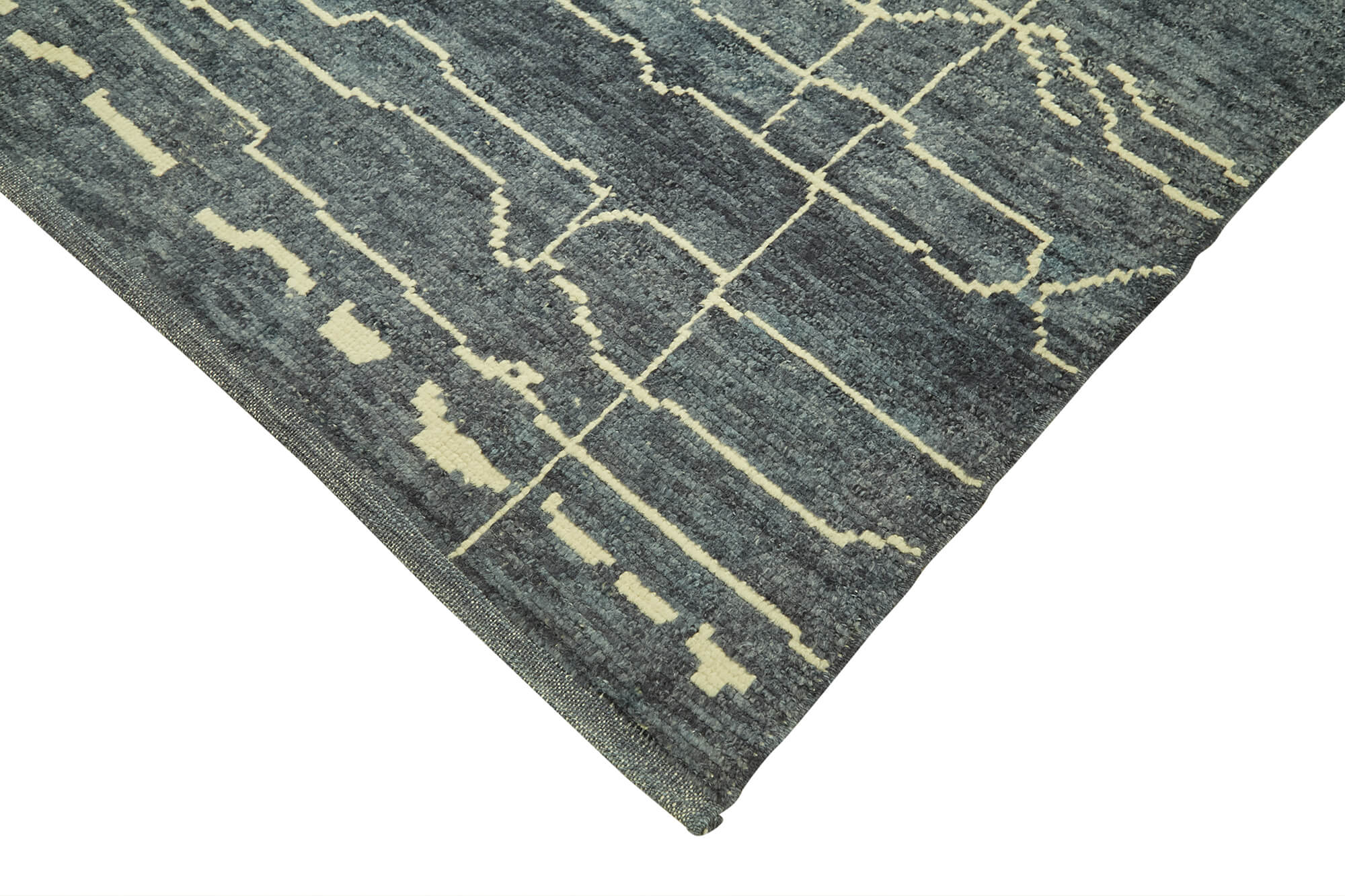 Purpleocco Blue Geometric Wool Cotton Handmade Rug 6'7'' x 9'10''