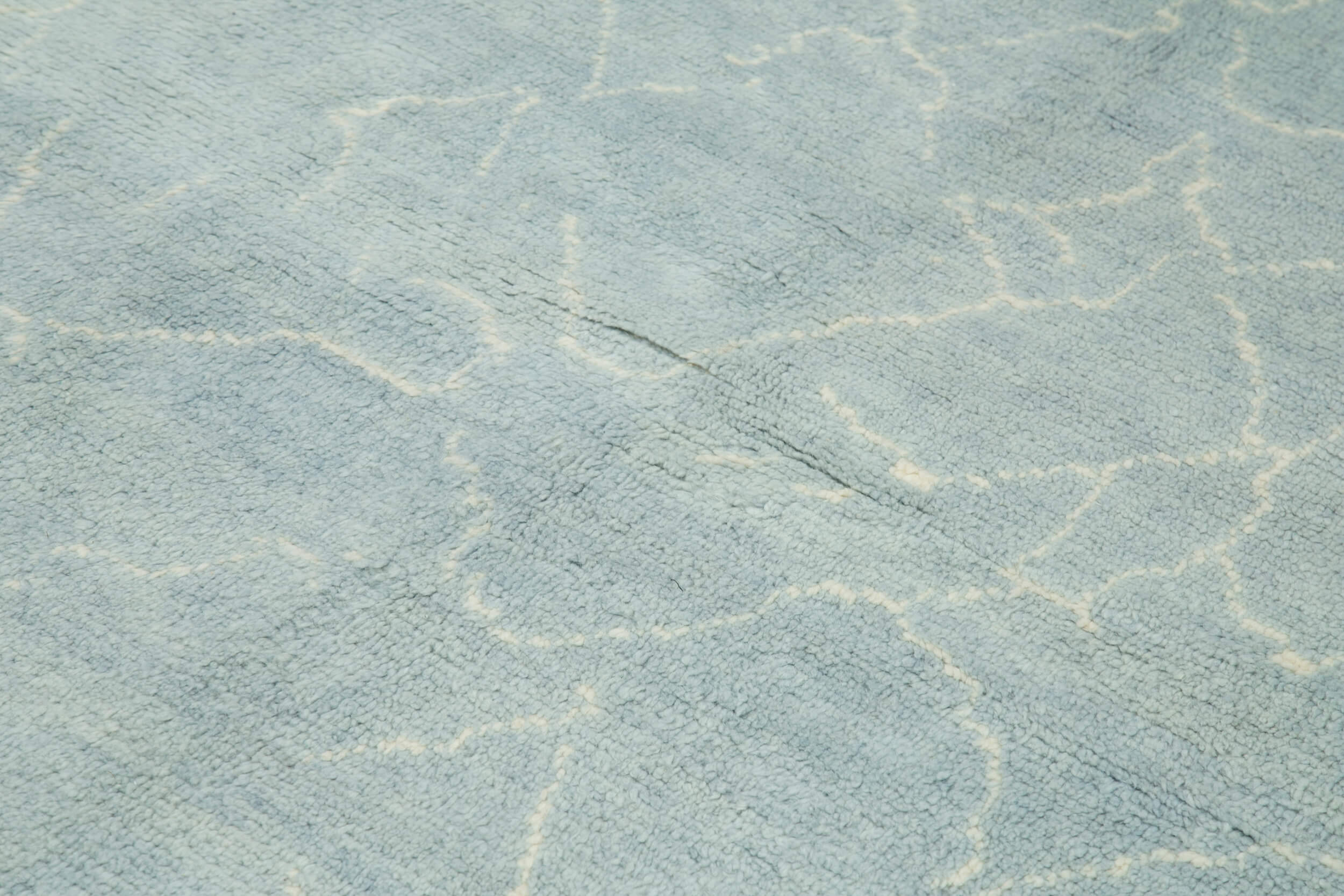 Purpleocco Blue Geometric Wool Cotton Handmade Rug 7'7'' x 9'1''