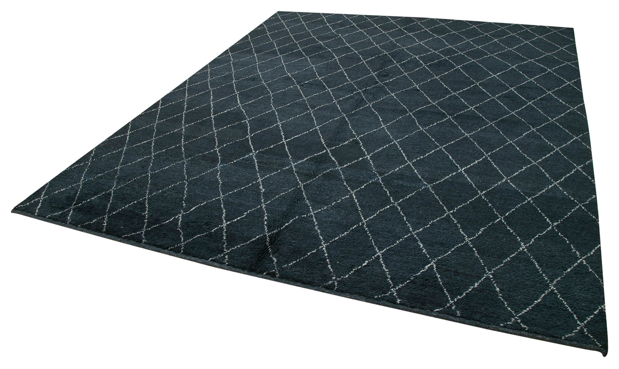 Purpleocco Blue Geometric Wool Cotton Handmade Rug 8'1'' x 10'0''
