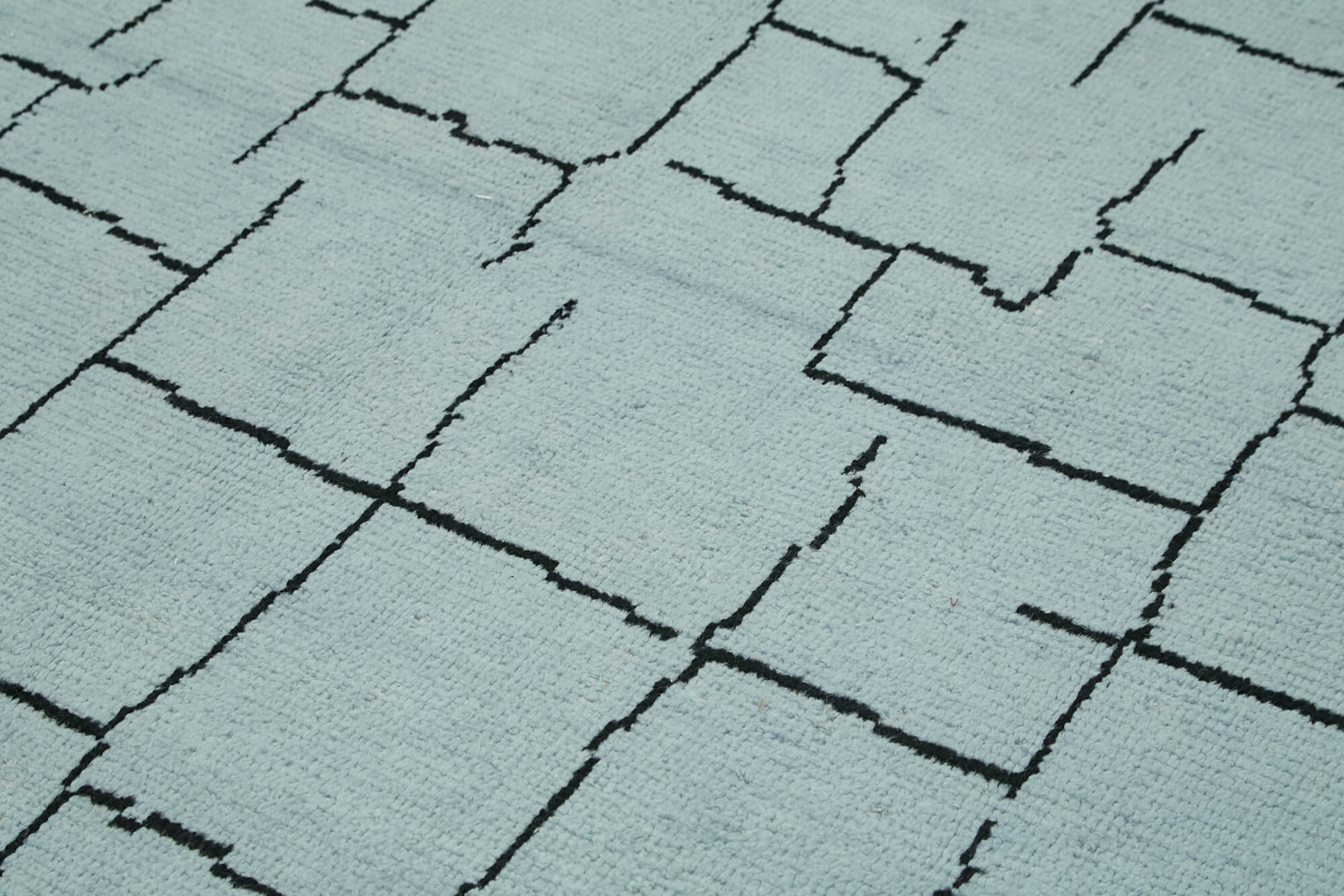 Purpleocco Blue Geometric Wool Cotton Handmade Rug 8'5'' x 12'10''