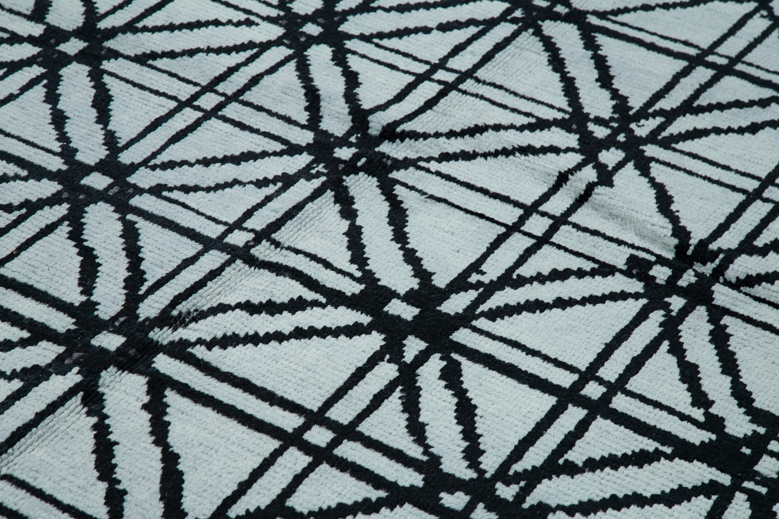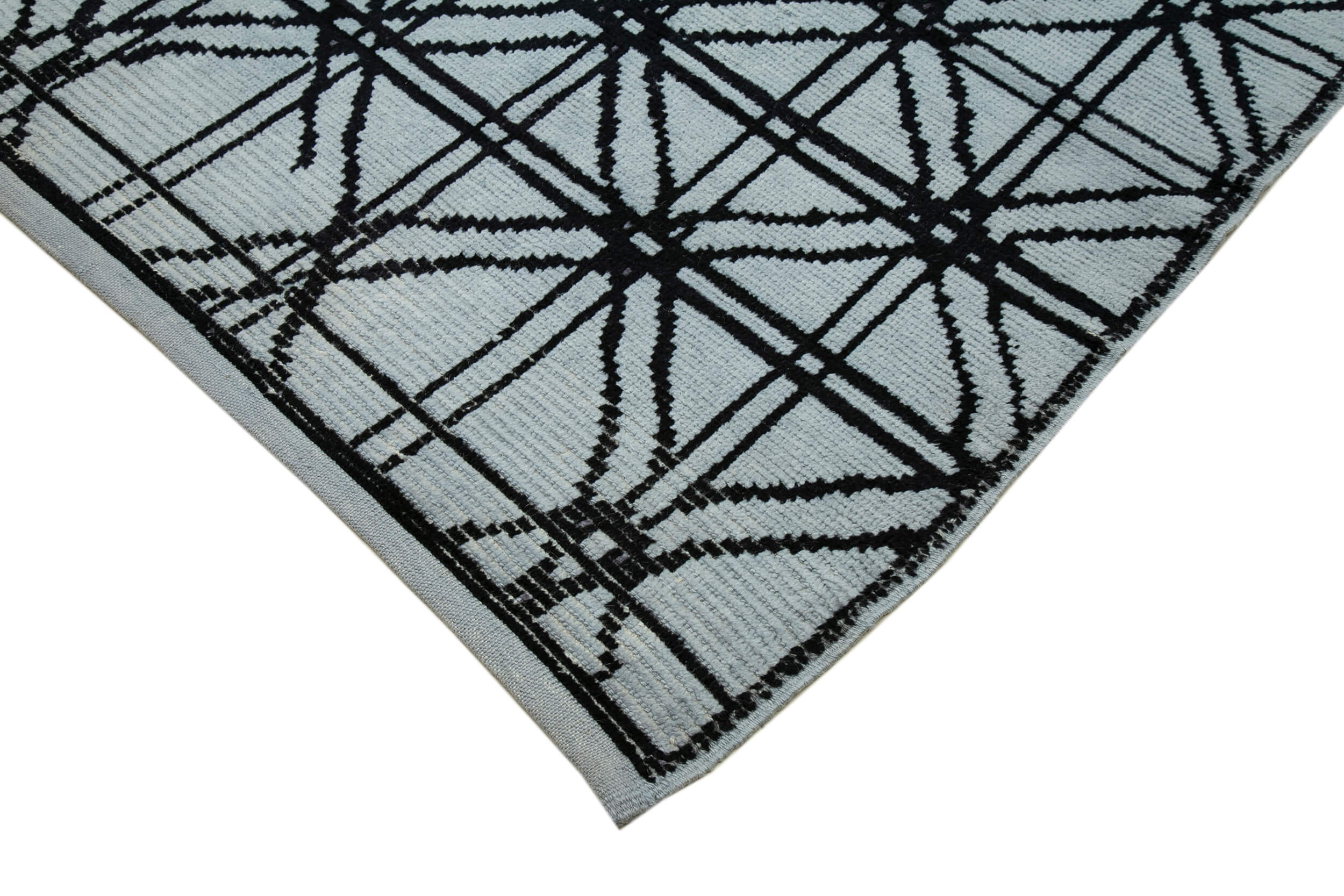 Purpleocco Blue Geometric Wool Cotton Handmade Rug 8'6'' x 12'4''