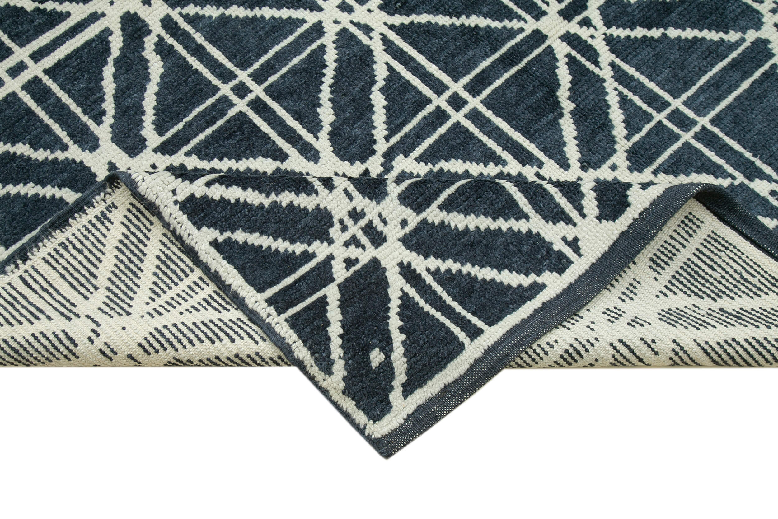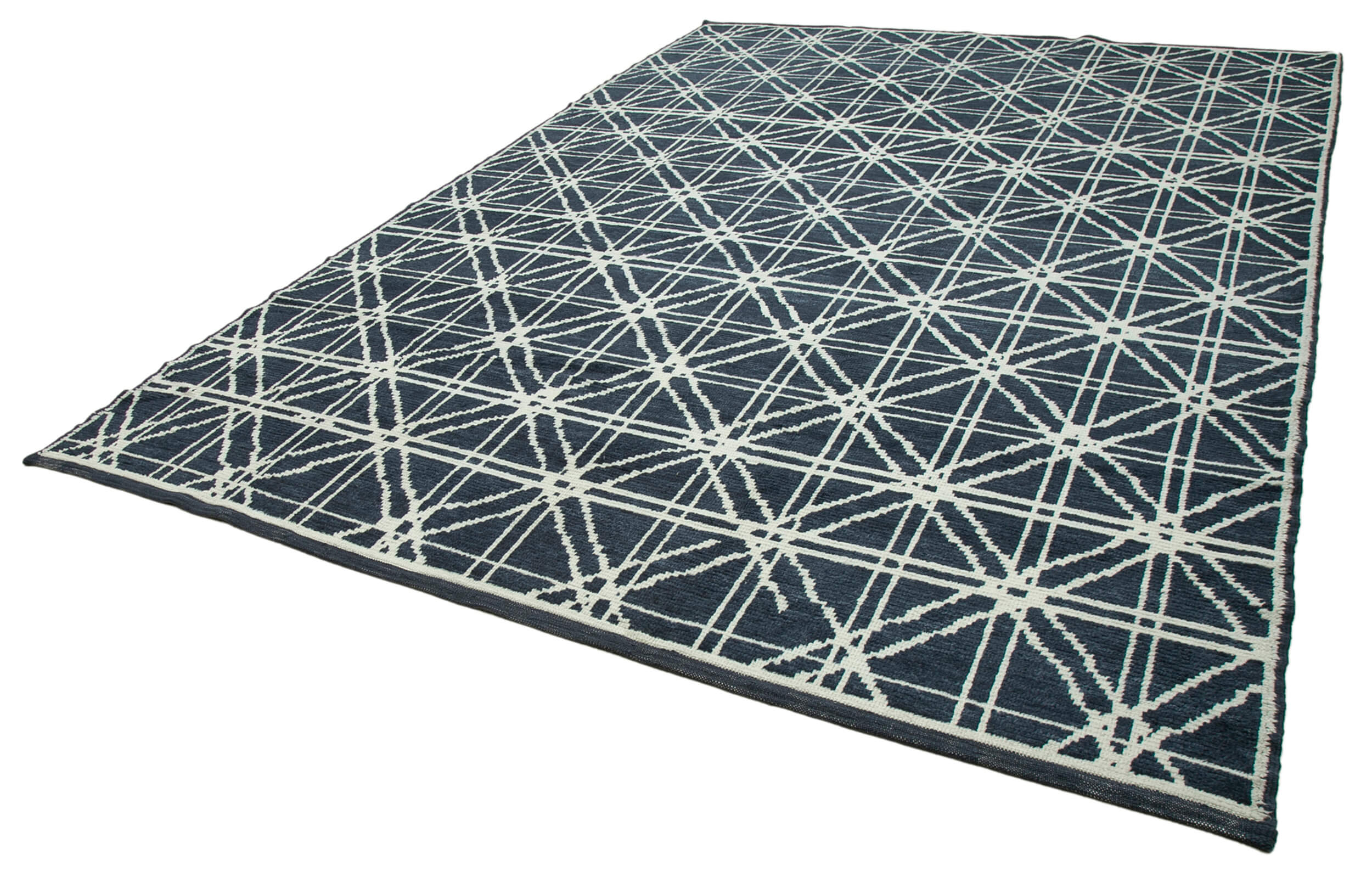 Purpleocco Blue Geometric Wool Cotton Handmade Rug 8'9'' x 12'7''