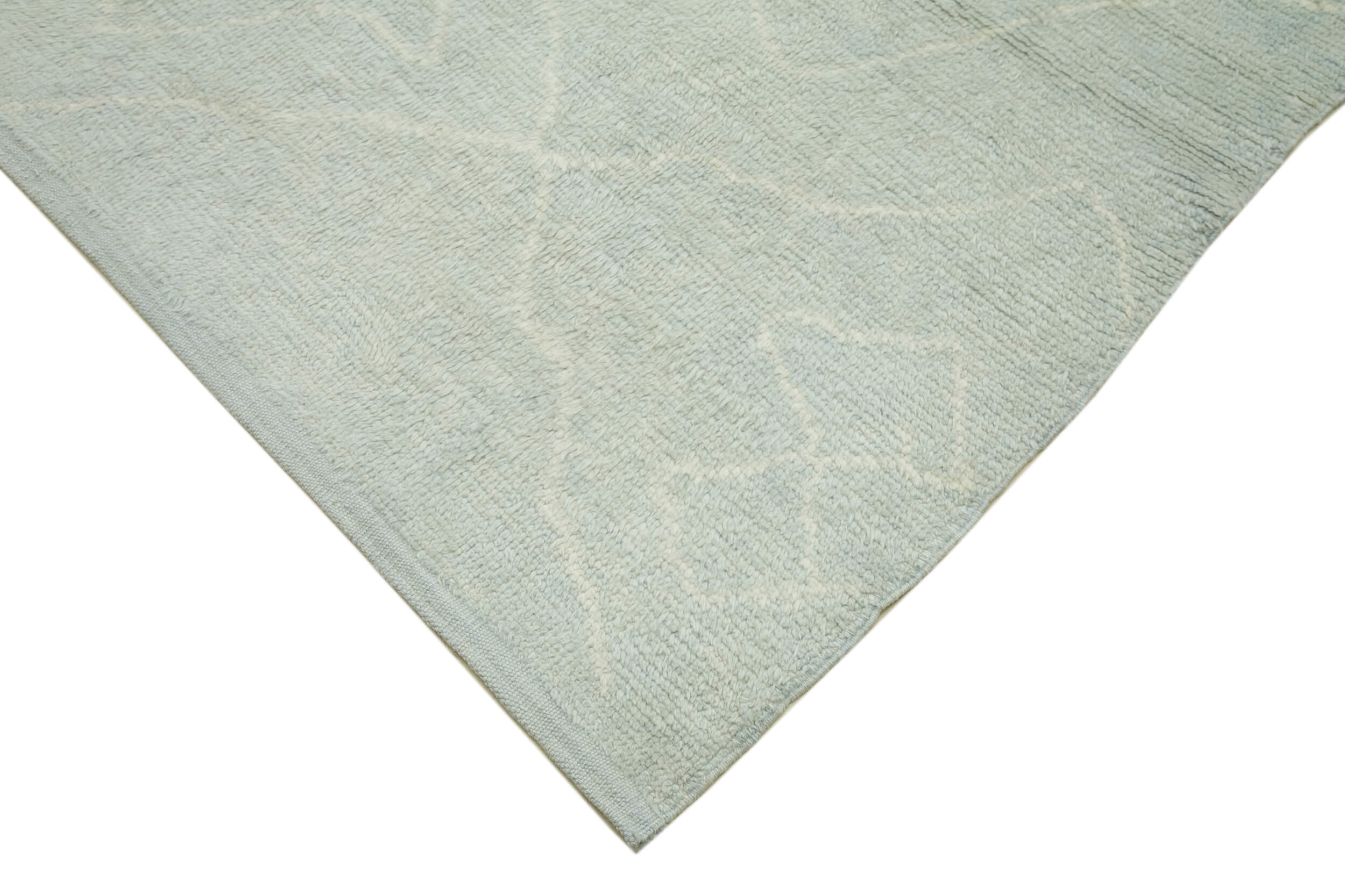 Purpleocco Blue Geometric Wool Cotton Handmade Rug 9'1'' x 11'6''