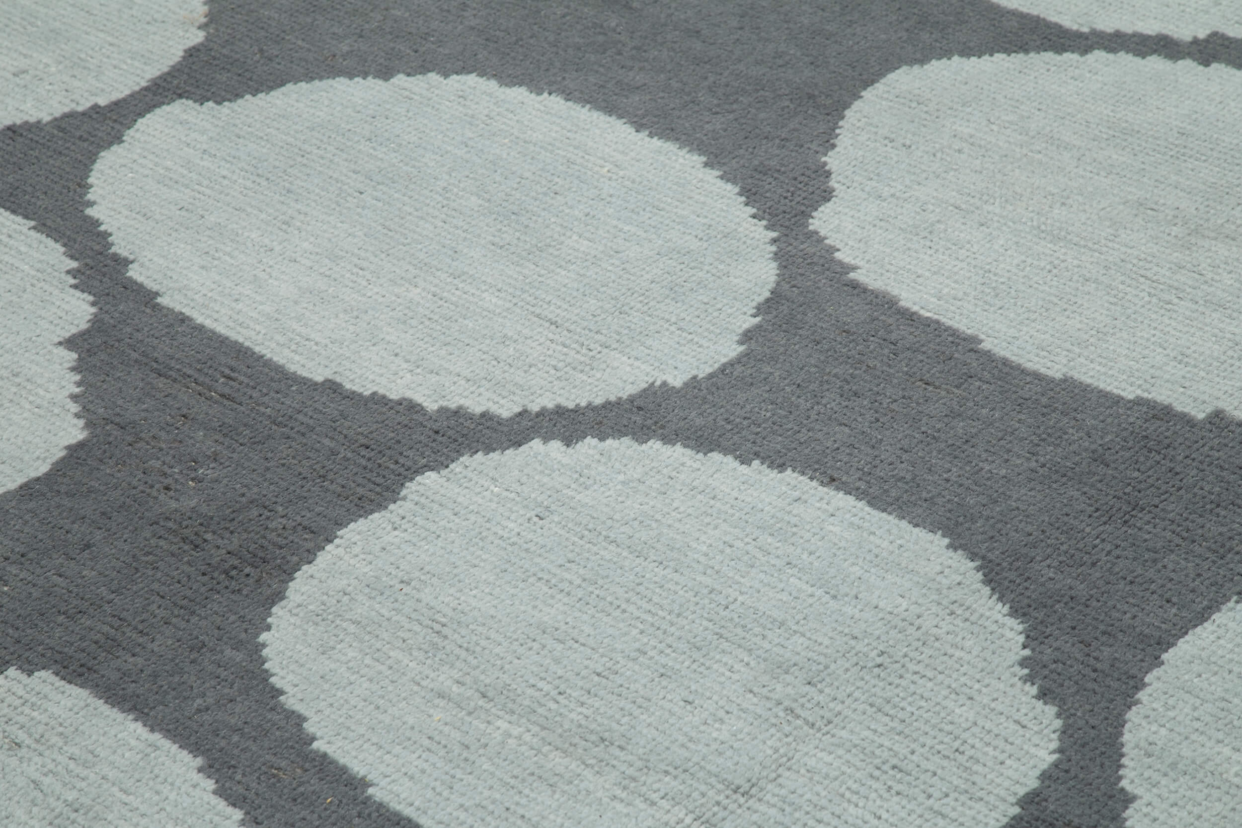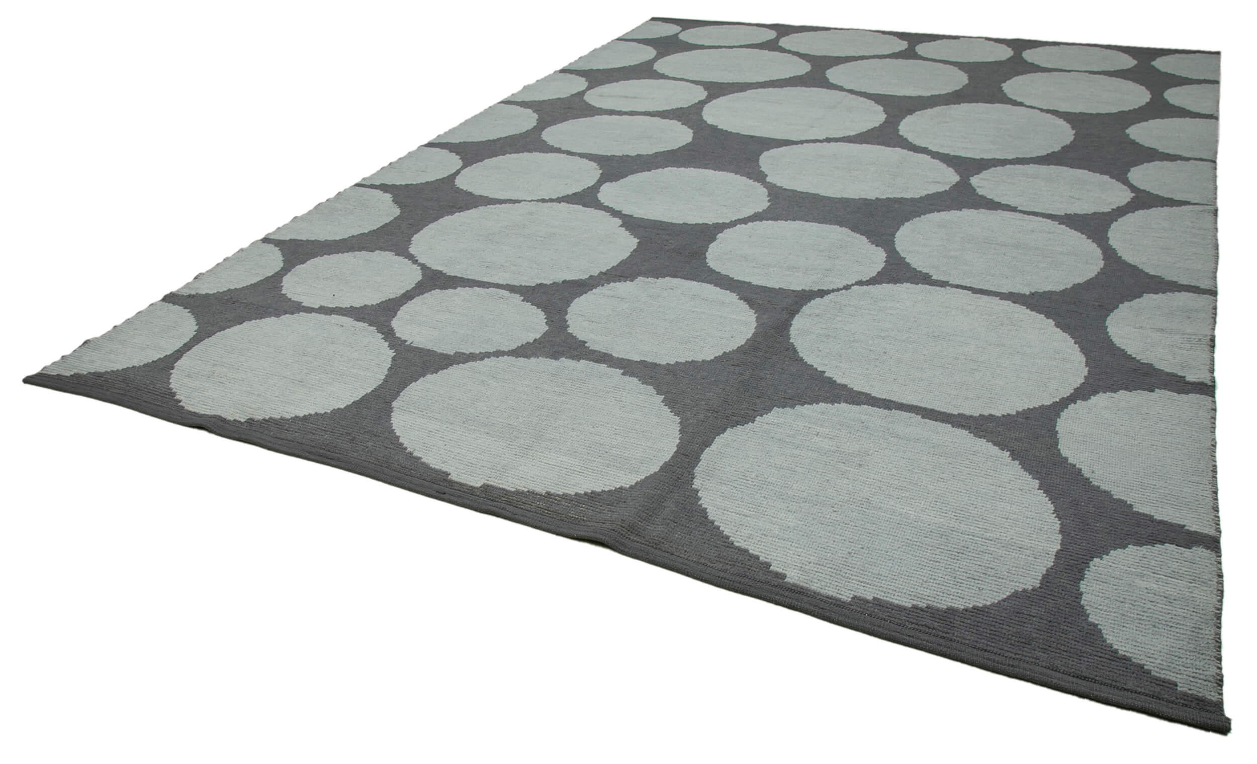 Purpleocco Blue Geometric Wool Cotton Handmade Rug 9'10'' x 13'5''