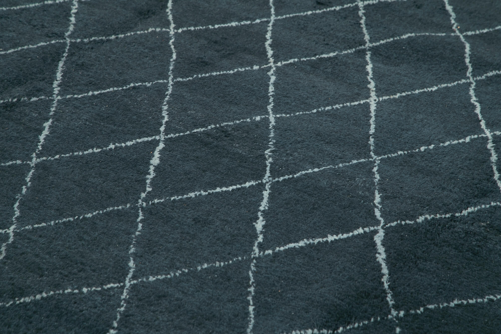 Purpleocco Blue Geometric Wool Cotton Handmade Rug 9'10'' x 13'10''