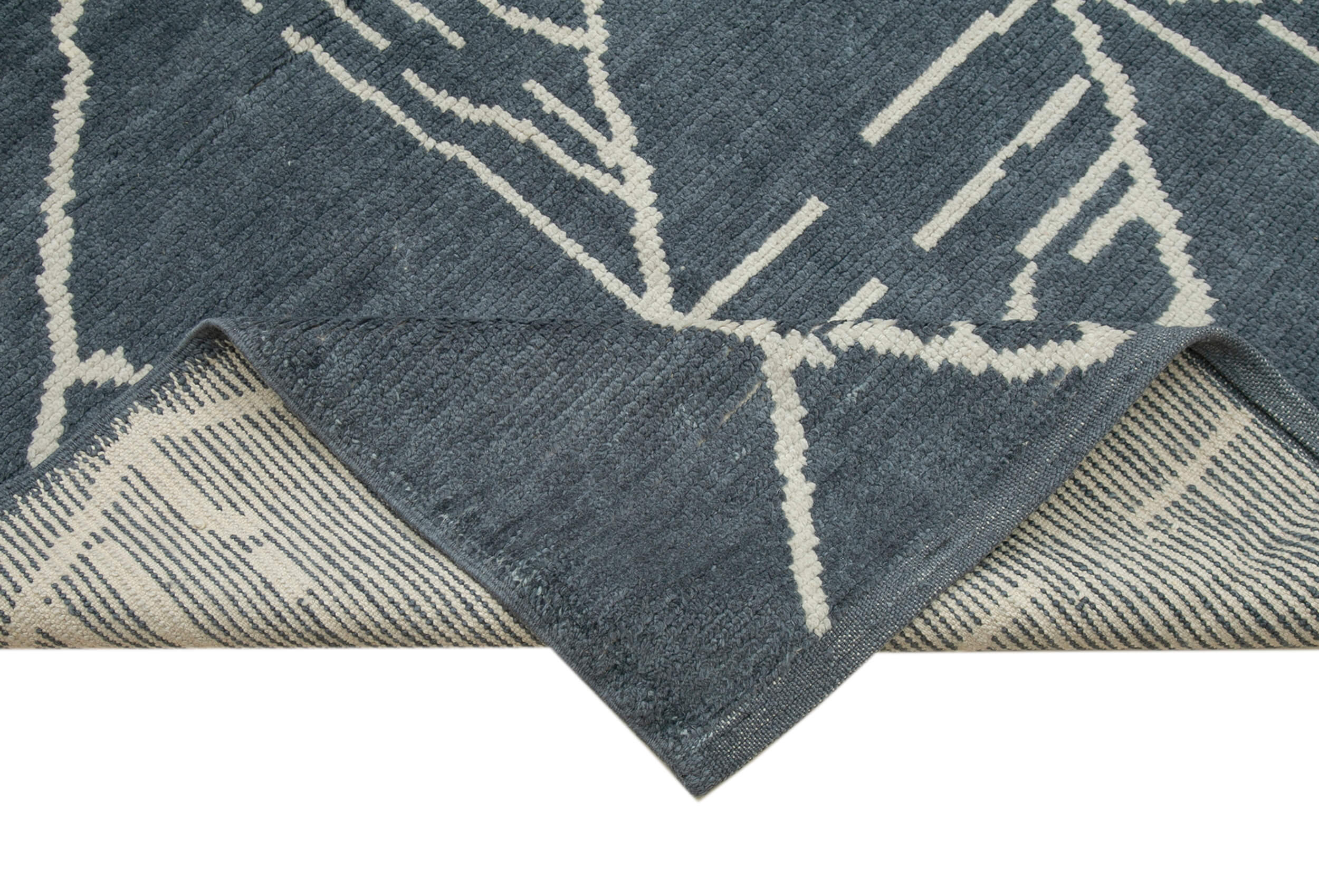 Purpleocco Blue Geometric Wool Cotton Handmade Rug 9'10'' x 13'11''