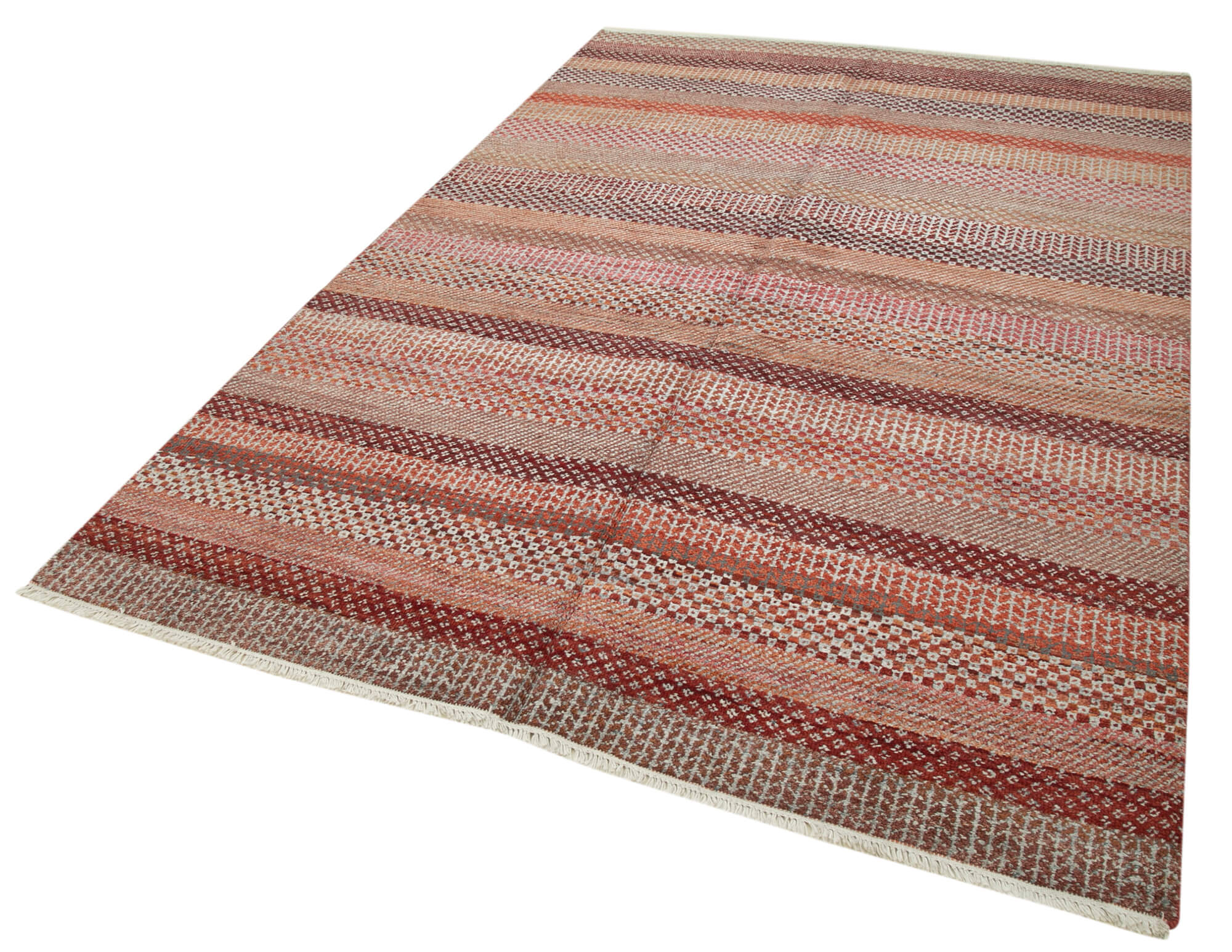 Purpleocco Brown Geometric Wool Cotton Handmade Rug 6'0'' x 9'0''