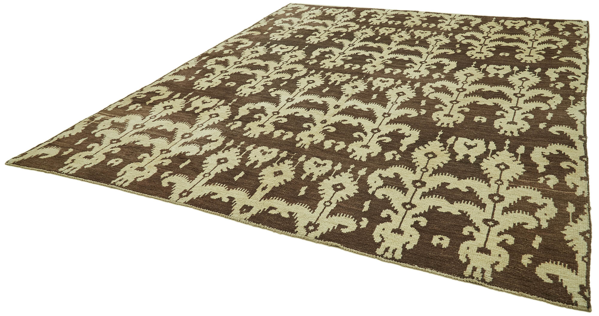 Purpleocco Brown Geometric Wool Cotton Handmade Rug 9'4'' x 11'8''