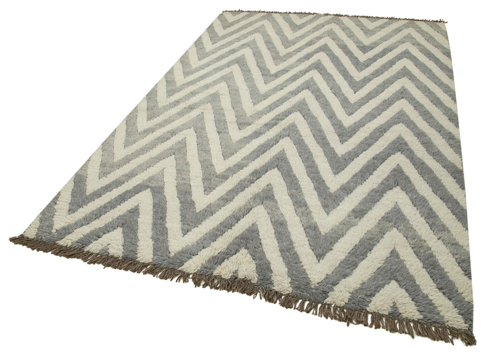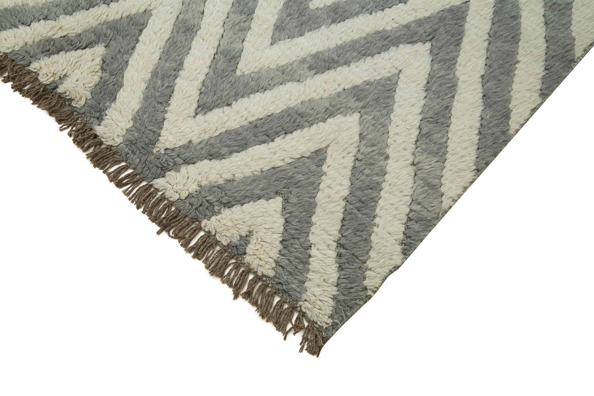 Purpleocco Grey Geometric Wool Cotton Handmade Rug 5'6'' x 8'6''