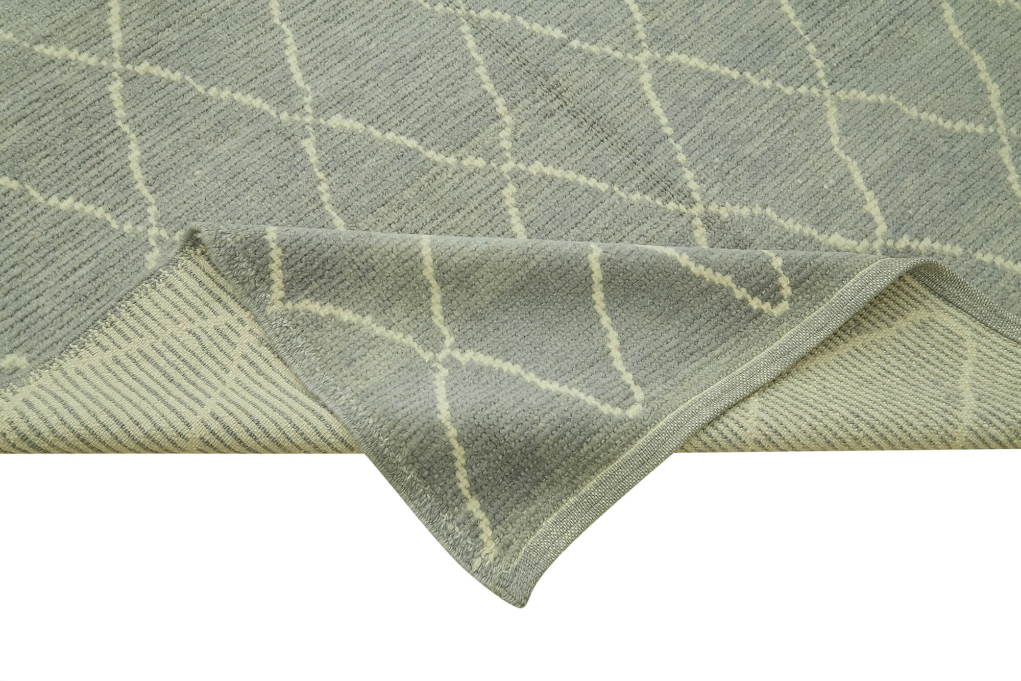 Purpleocco Grey Geometric Wool Cotton Handmade Rug 5'7'' x 7'10''