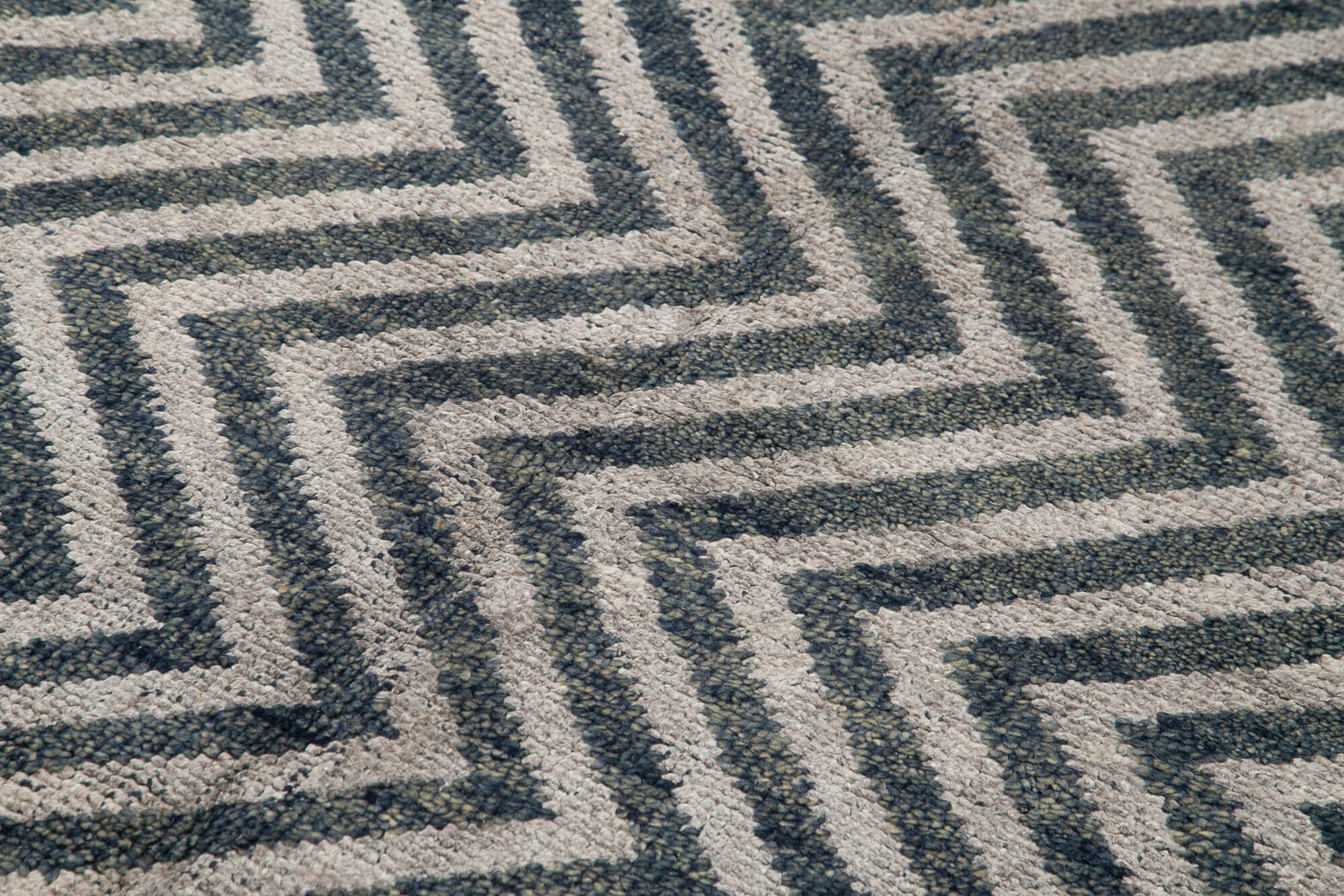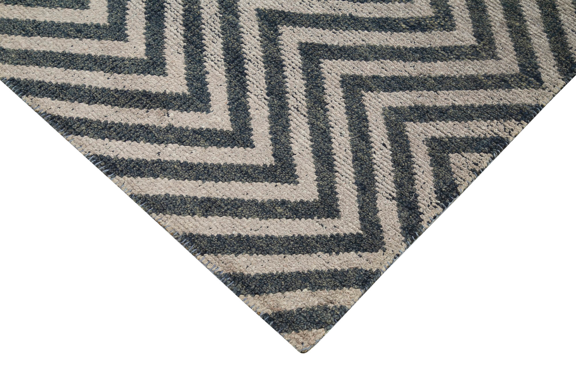 Purpleocco Grey Geometric Wool Cotton Handmade Rug 6'0'' x 8'10''