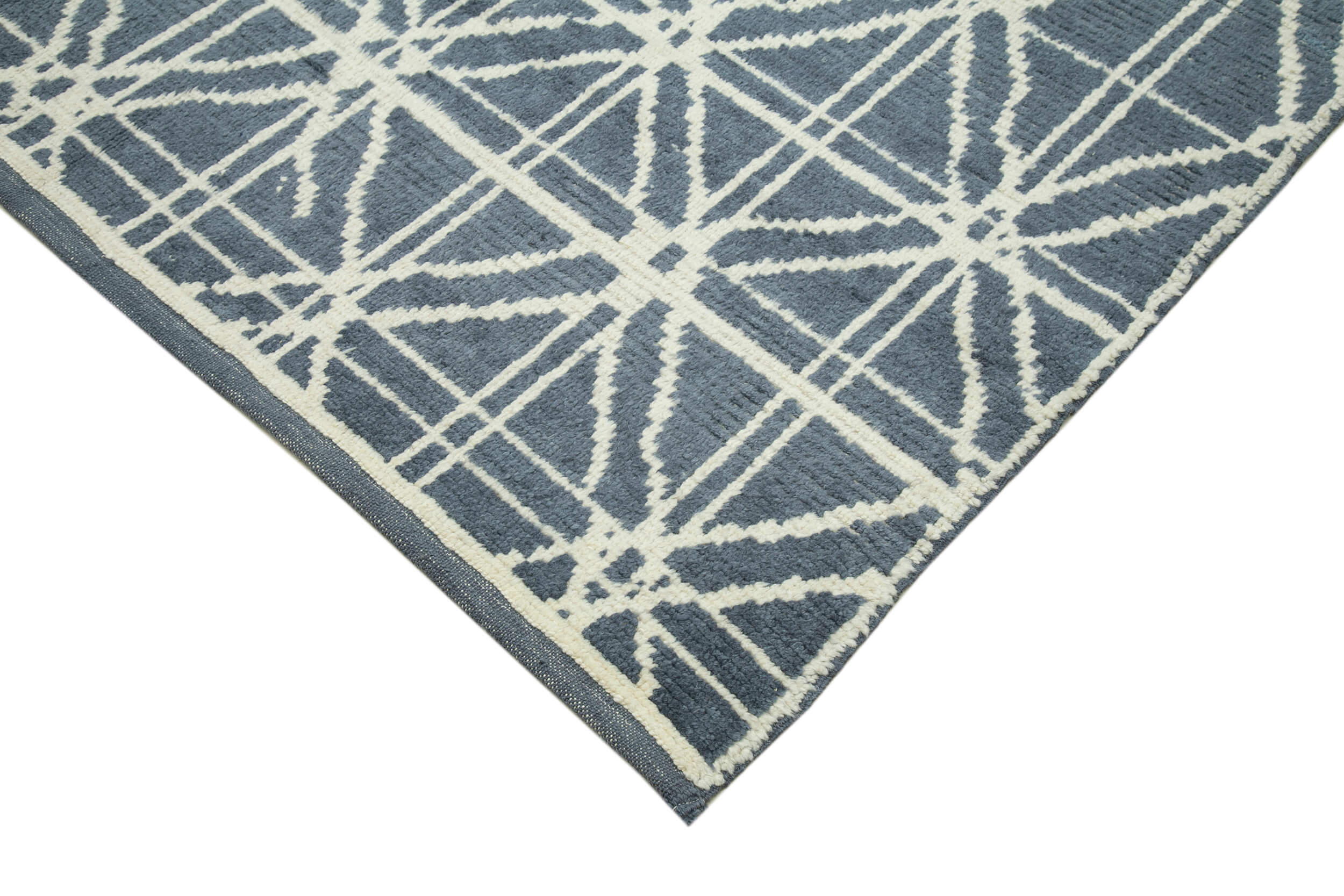 Purpleocco Grey Geometric Wool Cotton Handmade Rug 7'7'' x 10'0''