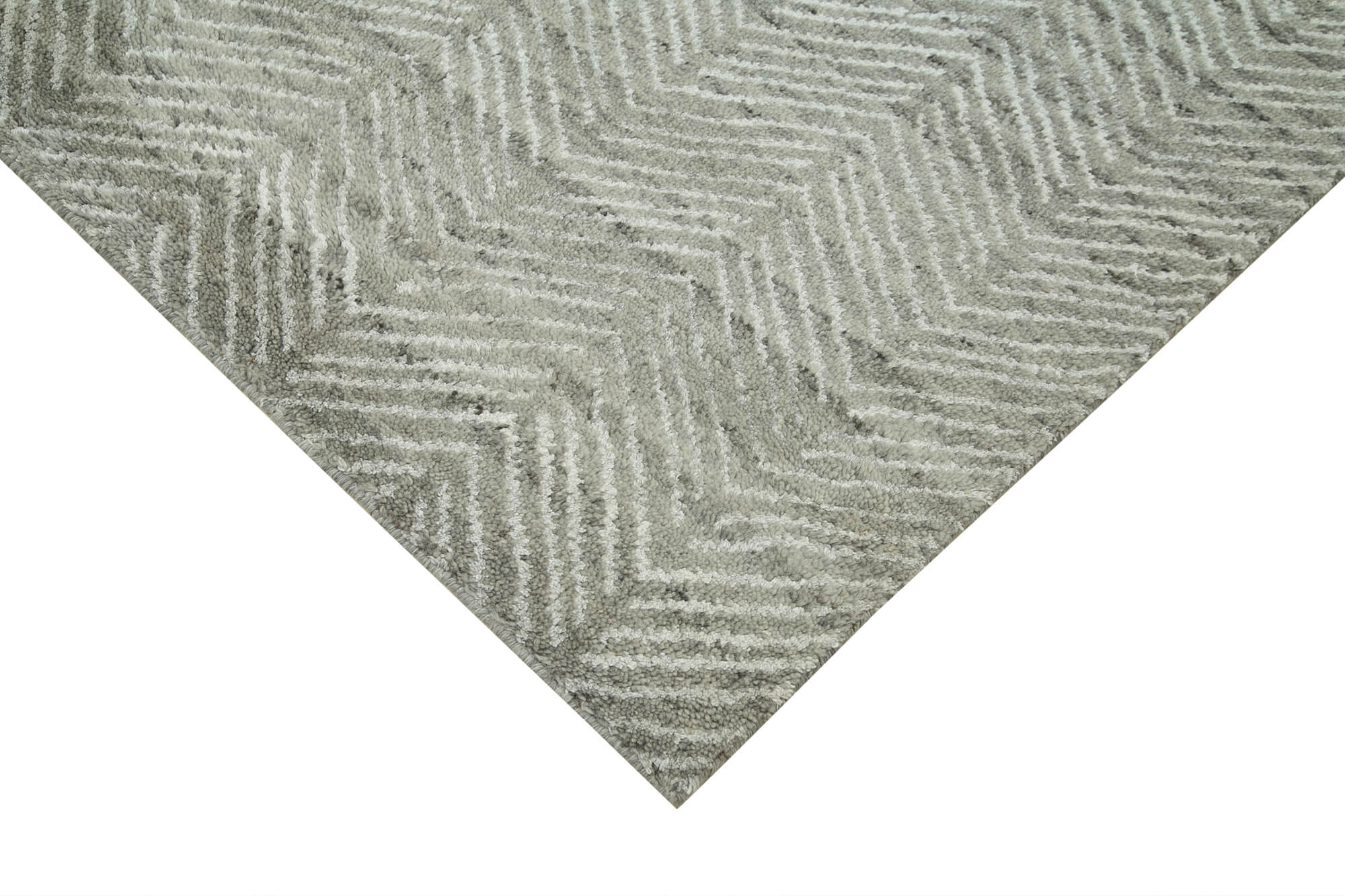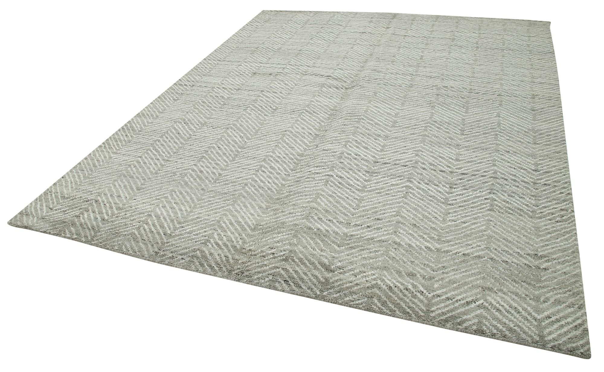 Purpleocco Grey Geometric Wool Cotton Handmade Rug 7'10'' x 10'0''