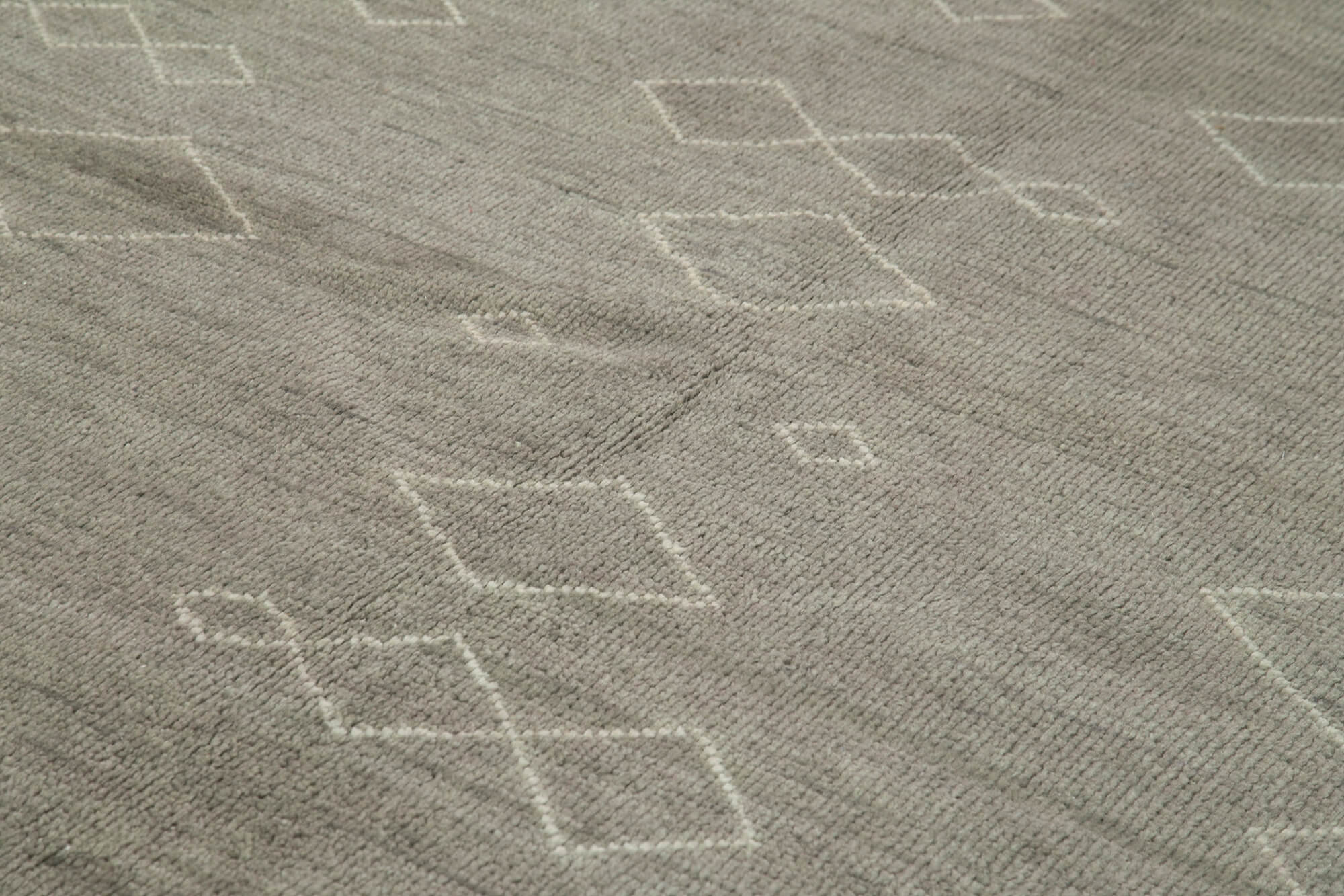 Purpleocco Grey Geometric Wool Cotton Handmade Rug 8'11'' x 11'11''