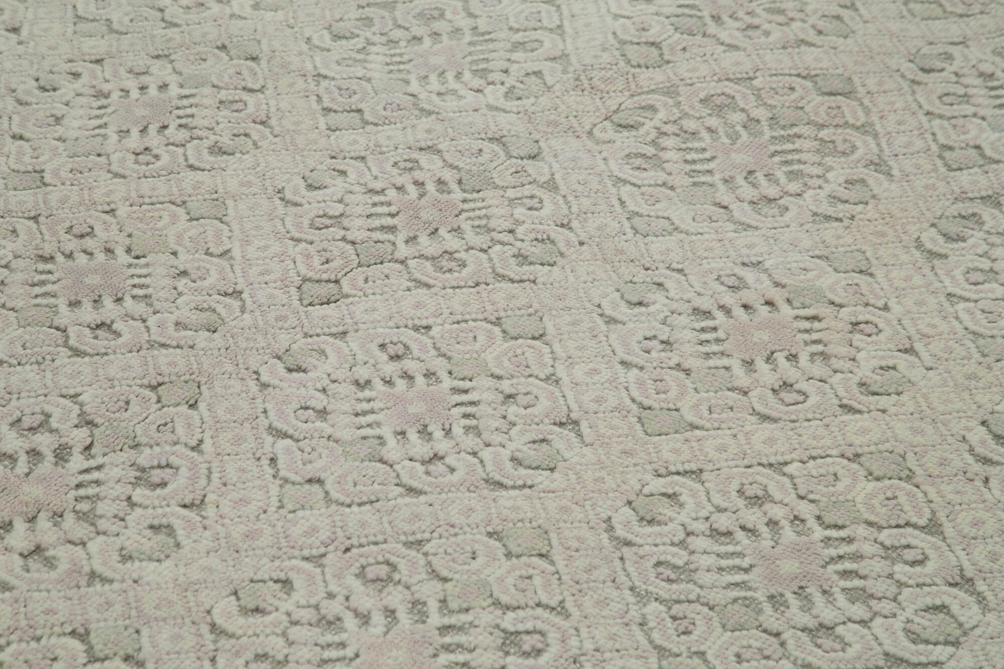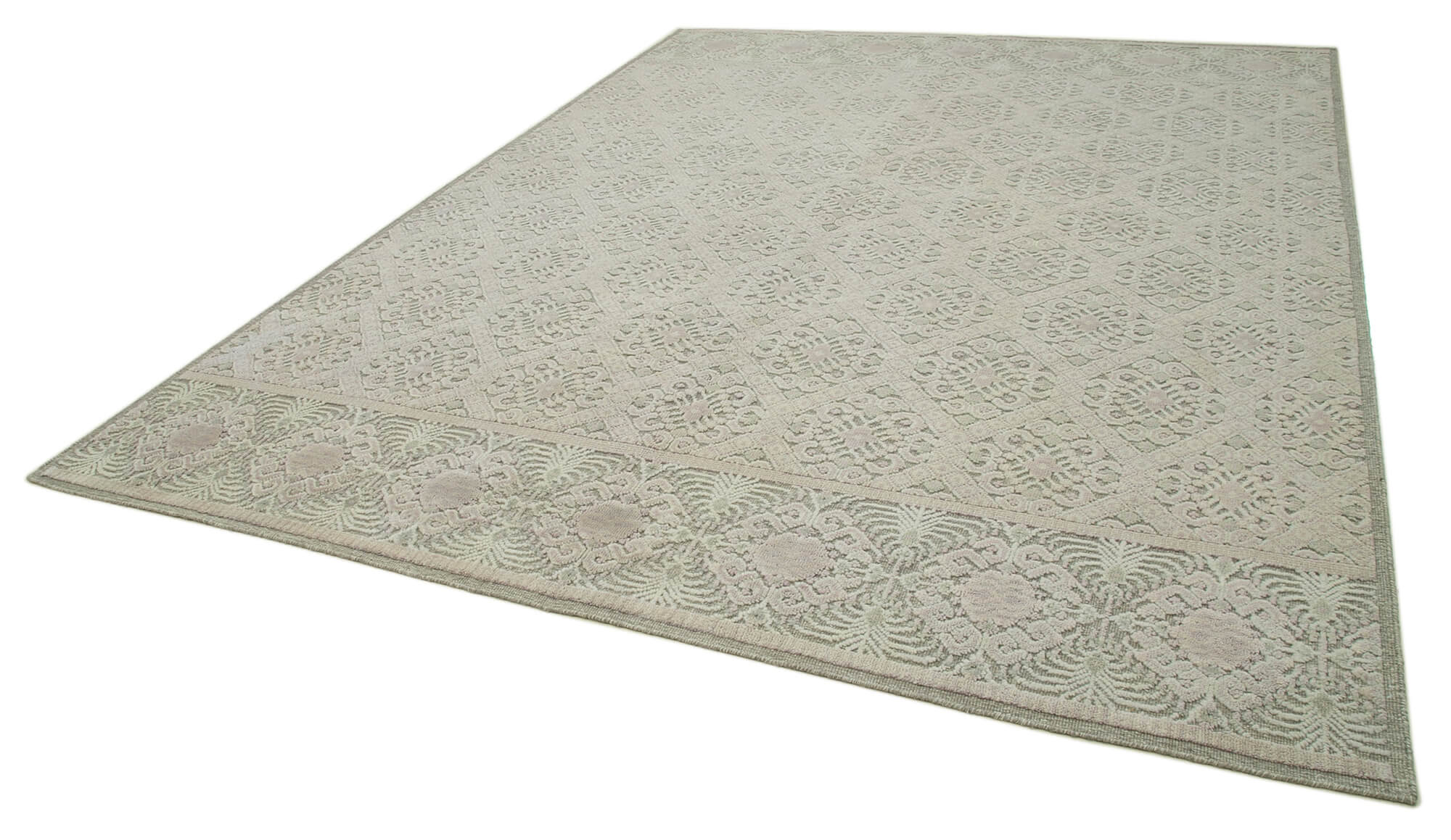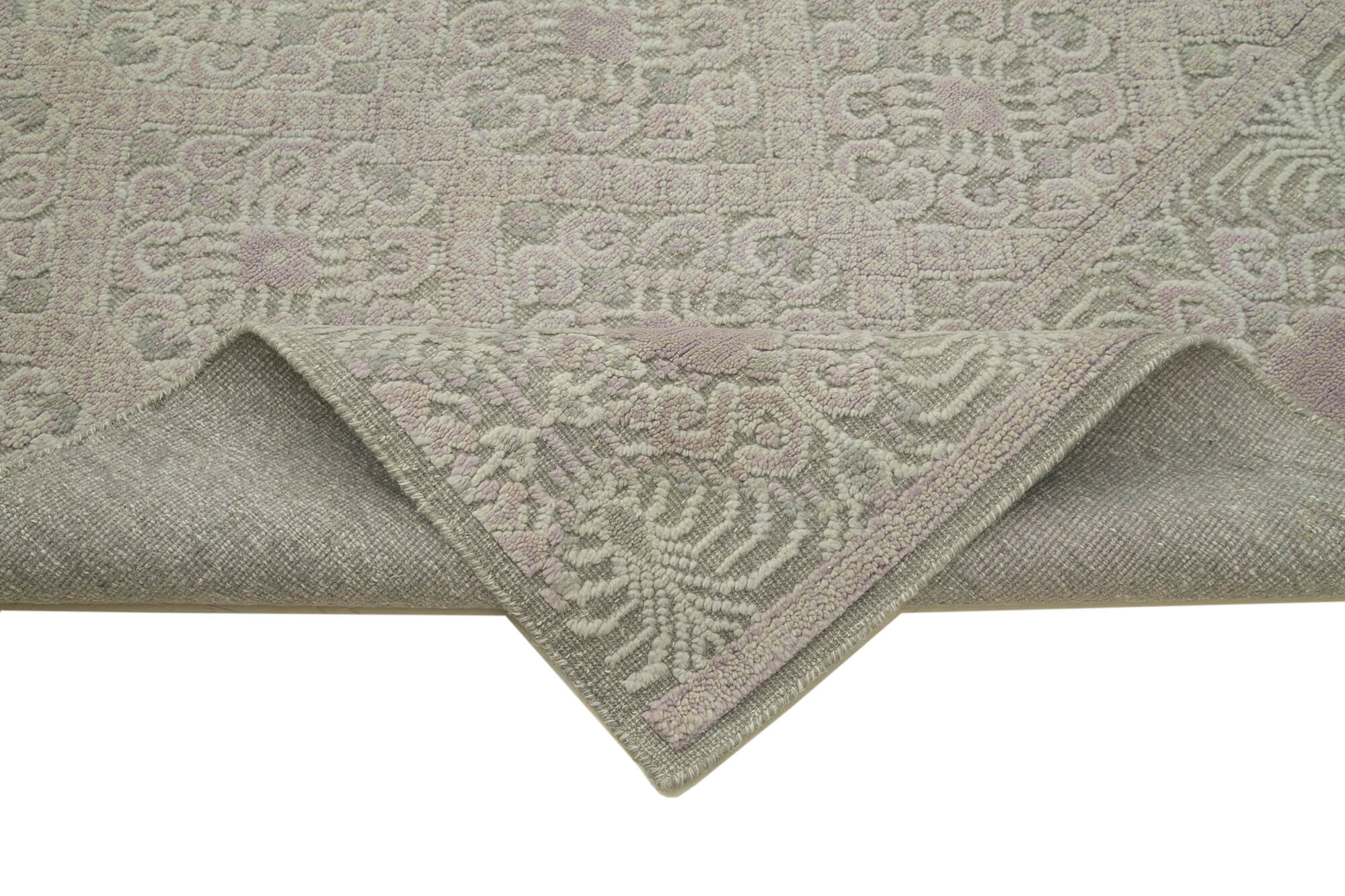 Purpleocco Grey Geometric Wool Cotton Handmade Rug 9'0'' x 12'2''
