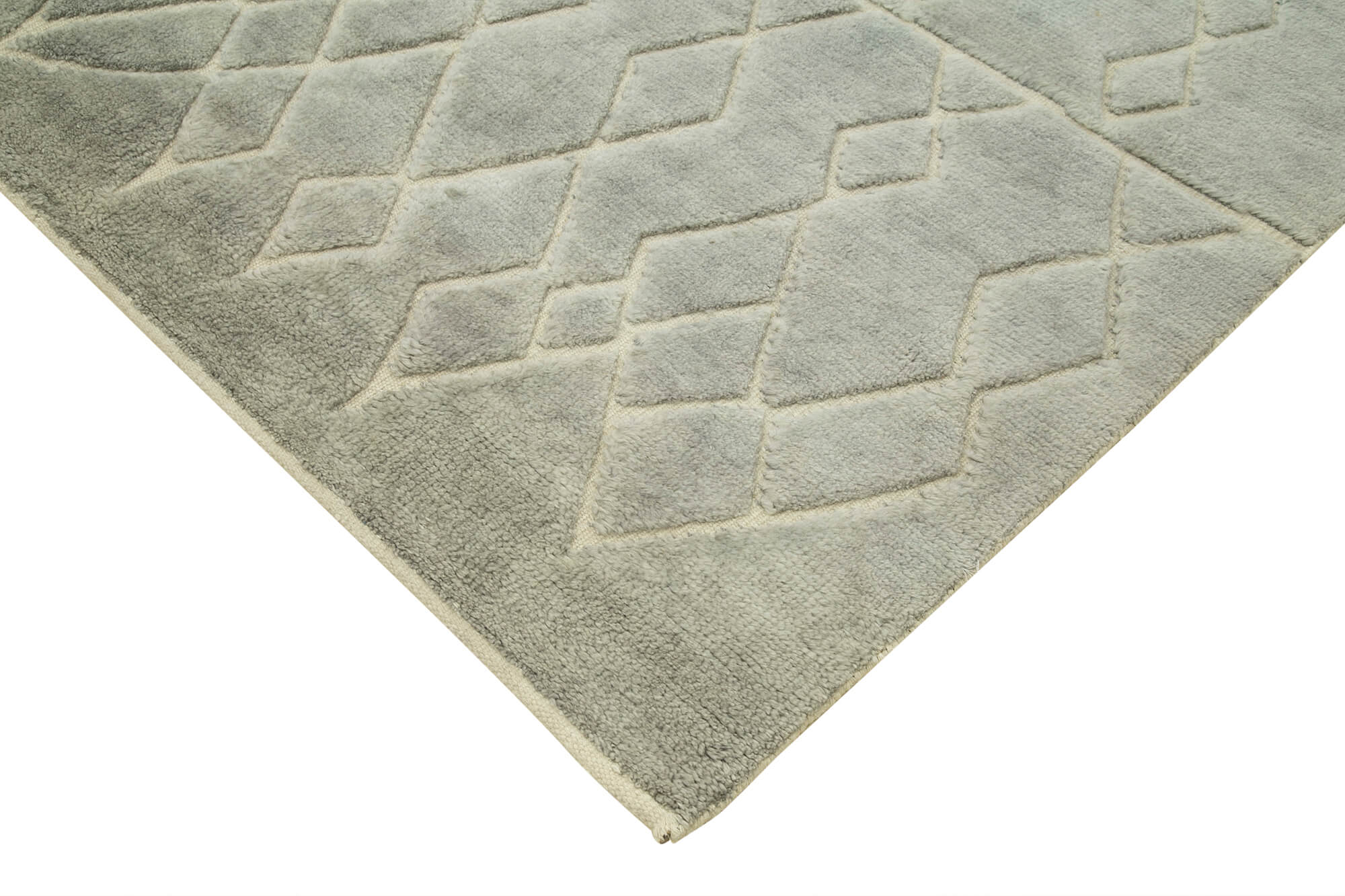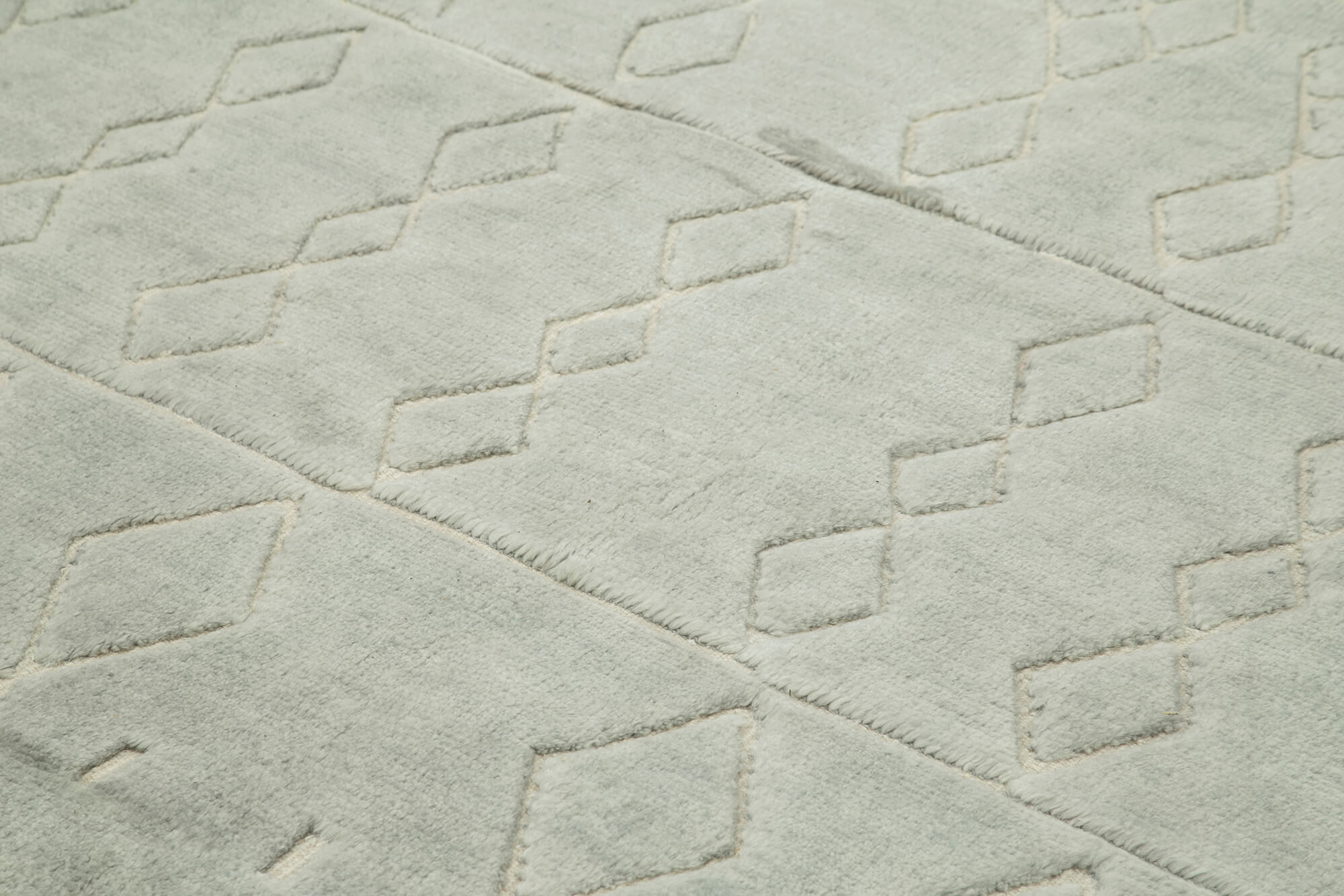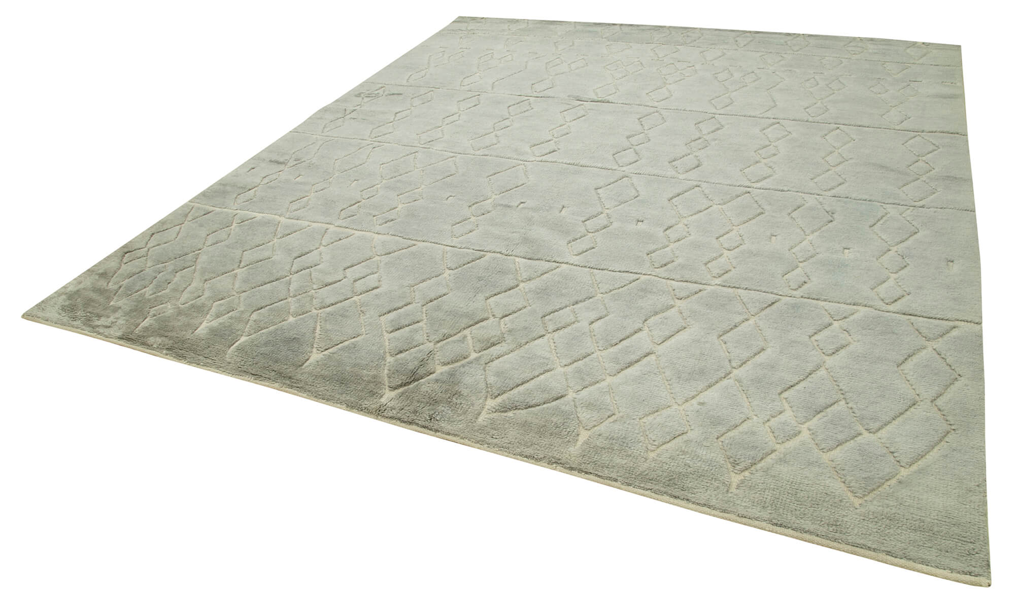 Purpleocco Grey Geometric Wool Cotton Handmade Rug 9'2'' x 10'6''