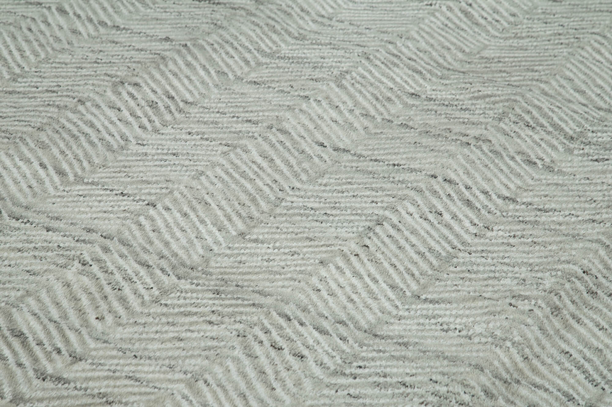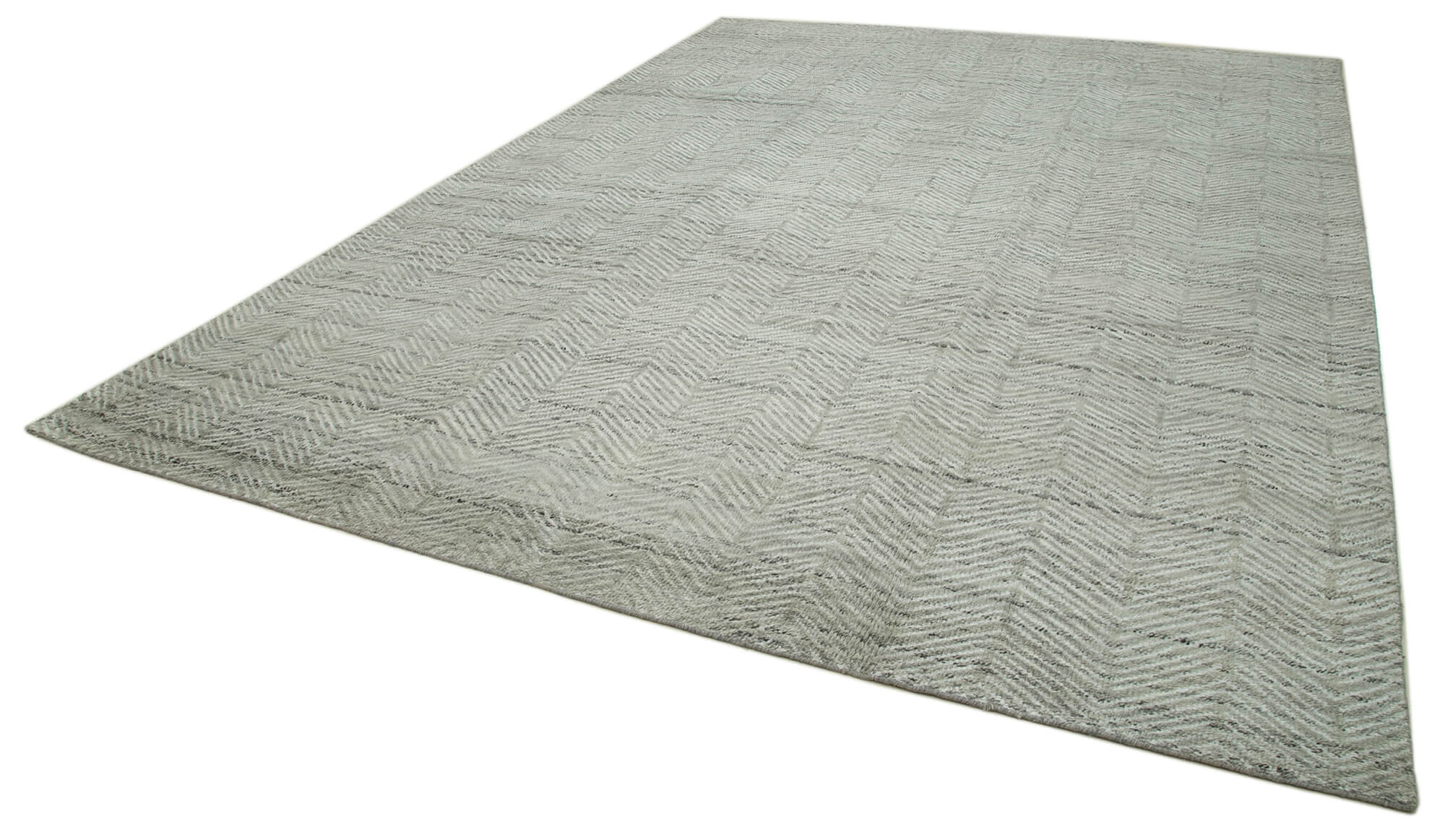 Purpleocco Grey Geometric Wool Cotton Handmade Rug 9'10'' x 13'10''