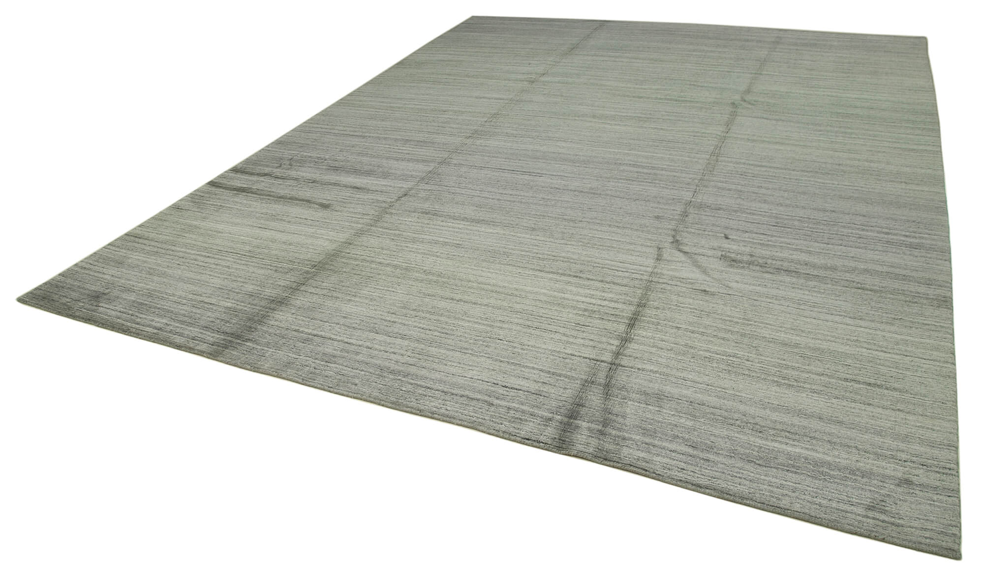 Purpleocco Grey Geometric Wool Cotton Handmade Rug 10'0'' x 13'0''