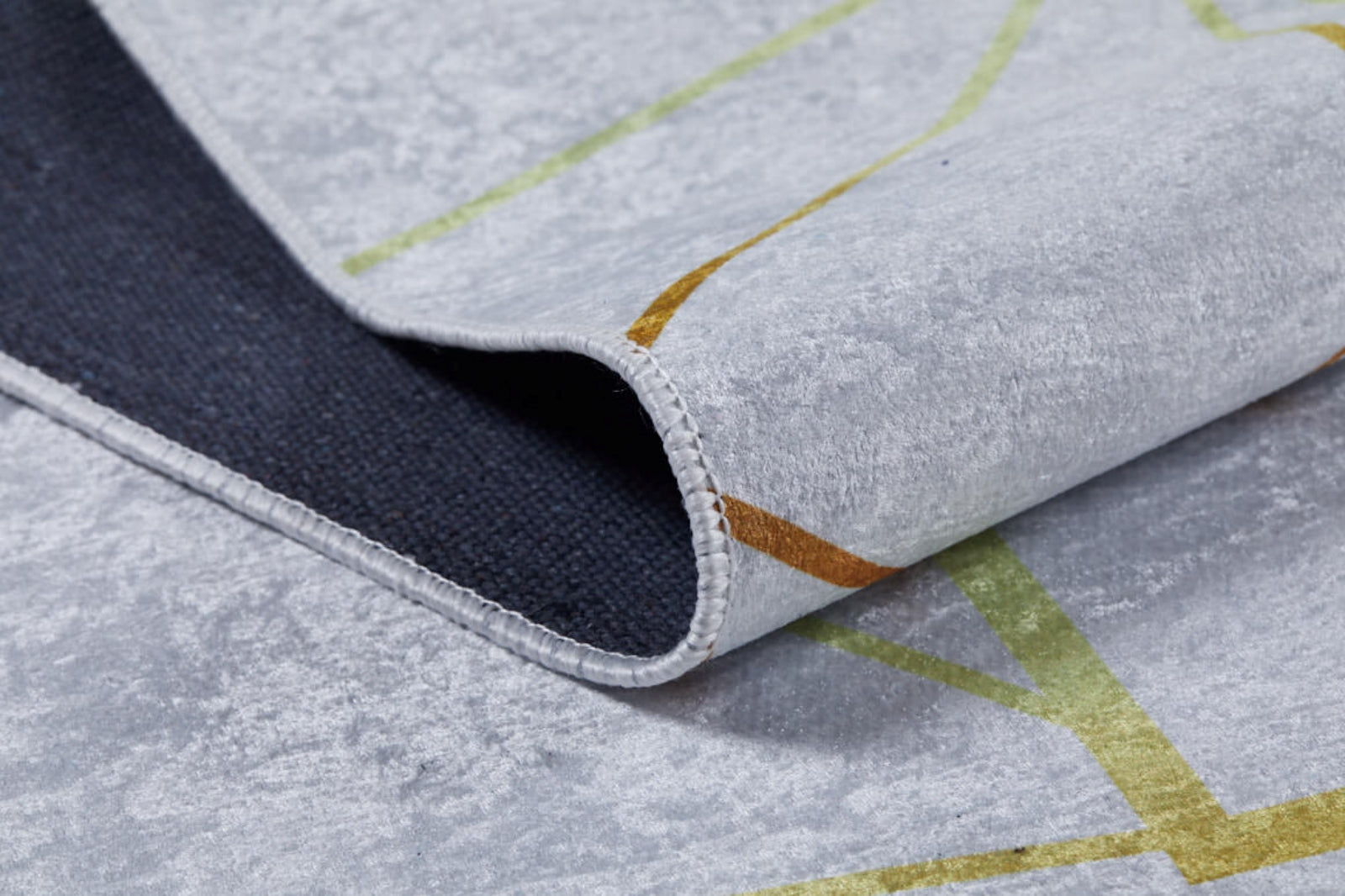 The Gold Frame Area Rug is a stylish area rug designed to elevate your living room carpet or hallway floor mat with a modern decorative rug that combines aesthetics and functionality. This digital print rug features a framed design rug pattern that adds a touch of elegance to any space while ensuring it remains a dust free carpet that supports a healthy home environment. Crafted with antibacterial and antiallergic carpet technology, this non slip carpet protects your family from allergens and ensures safety on all floor types. The washable floor rug is easy to maintain, making it perfect for high-traffic areas such as kitchens and entryways.