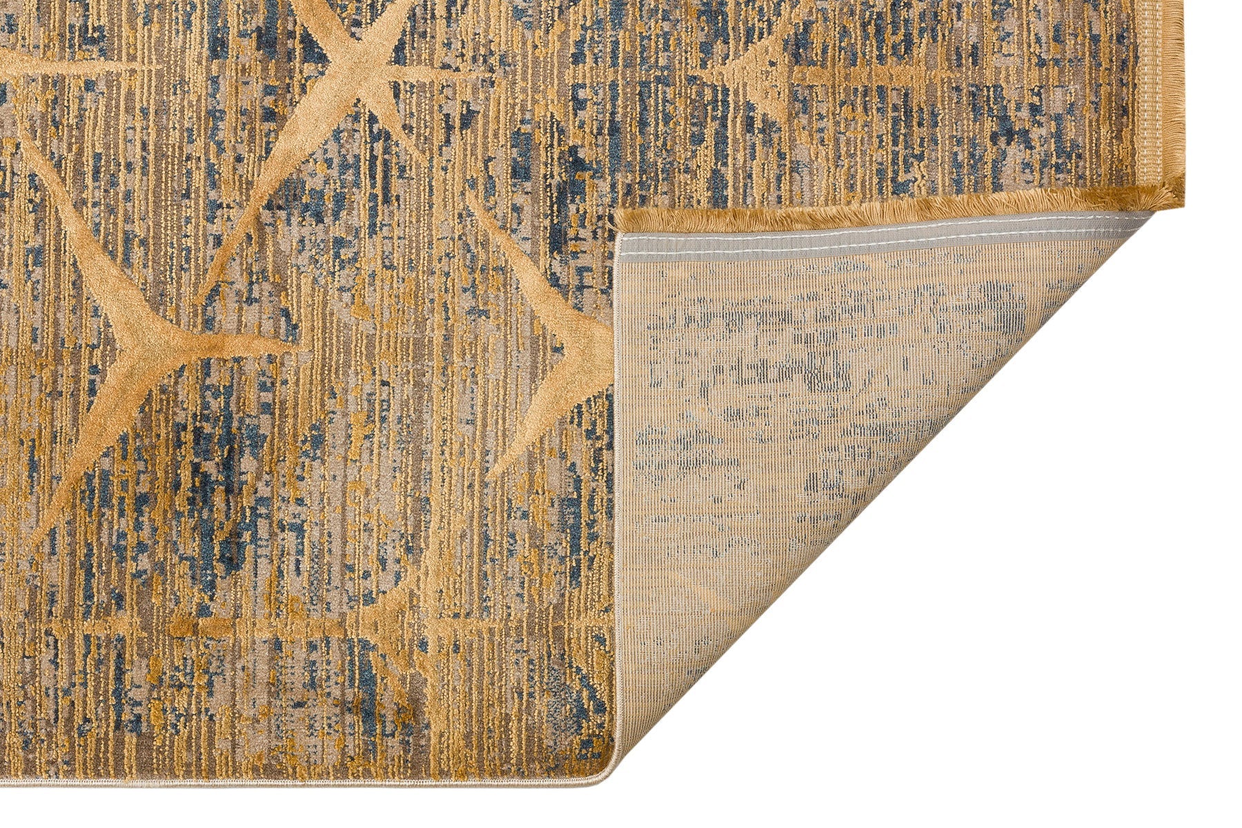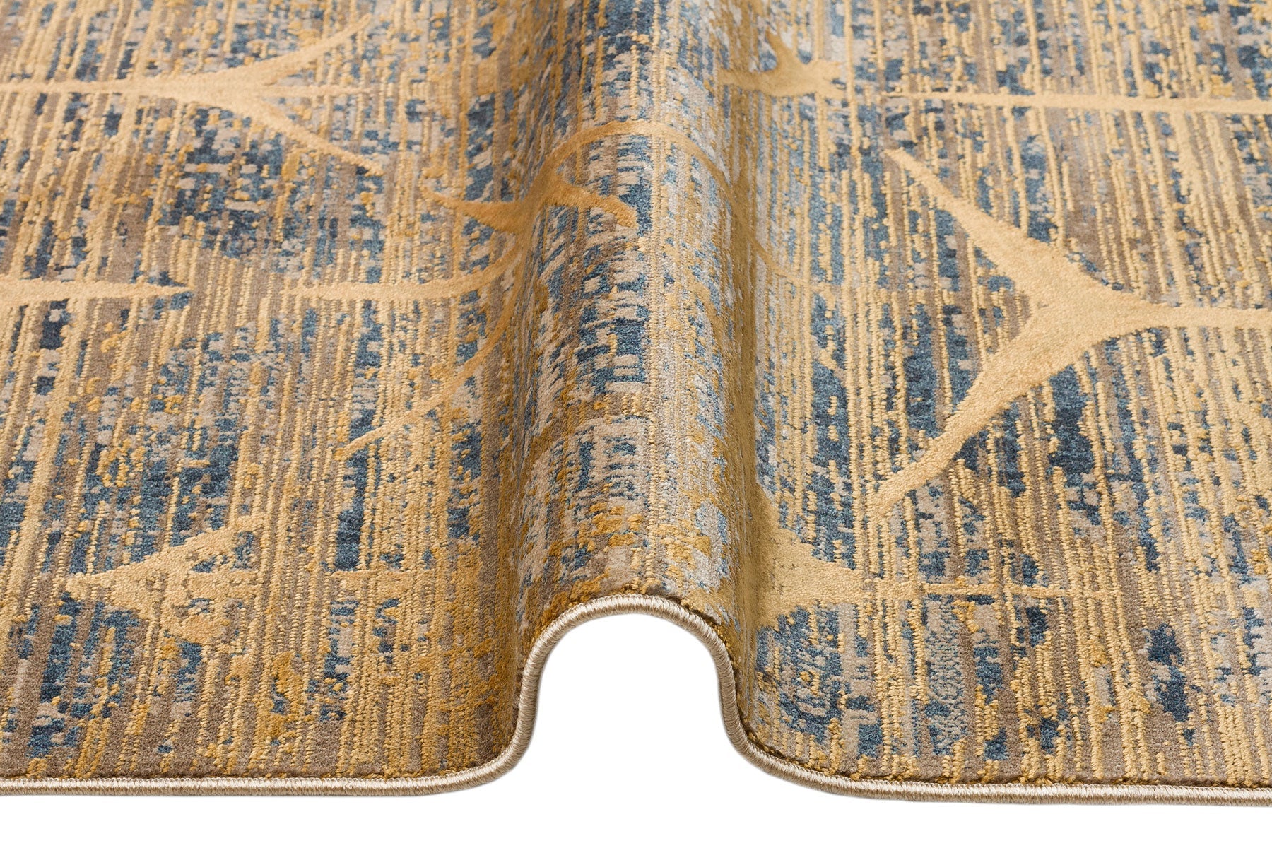 Gold Geometric Area Rug – Machine Made Rug with Soft Silky Carpet Touch