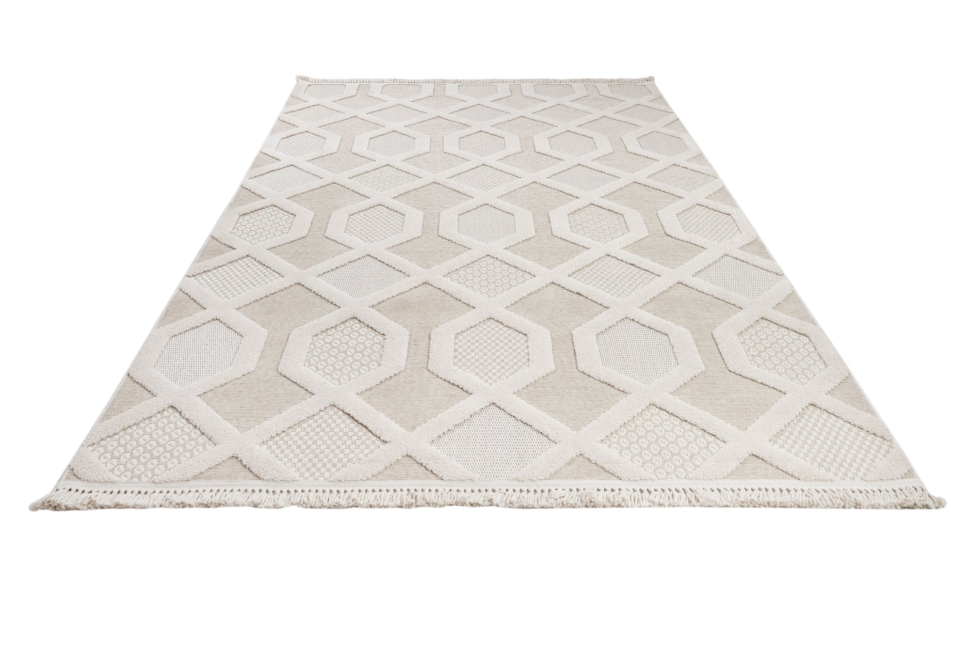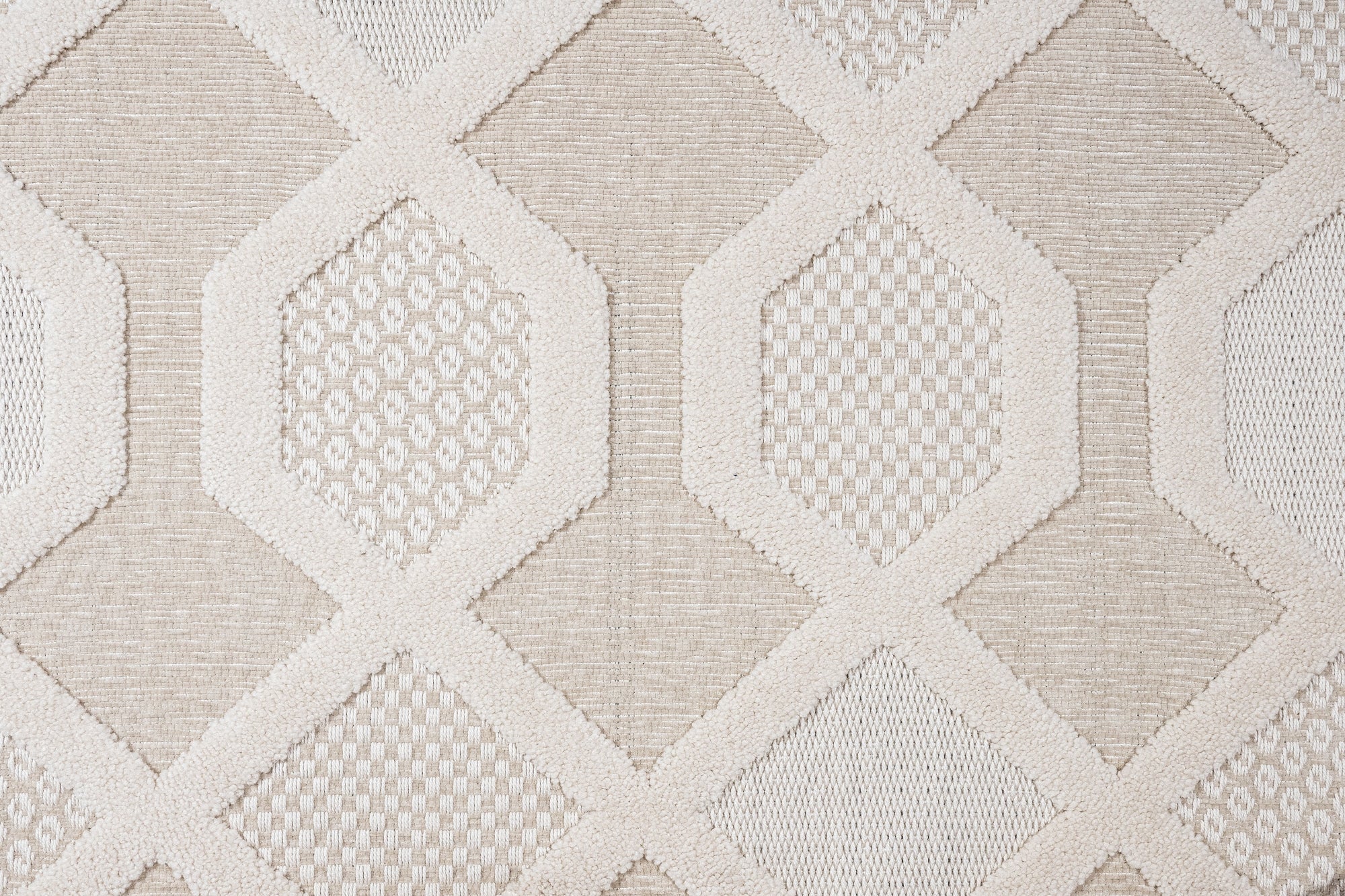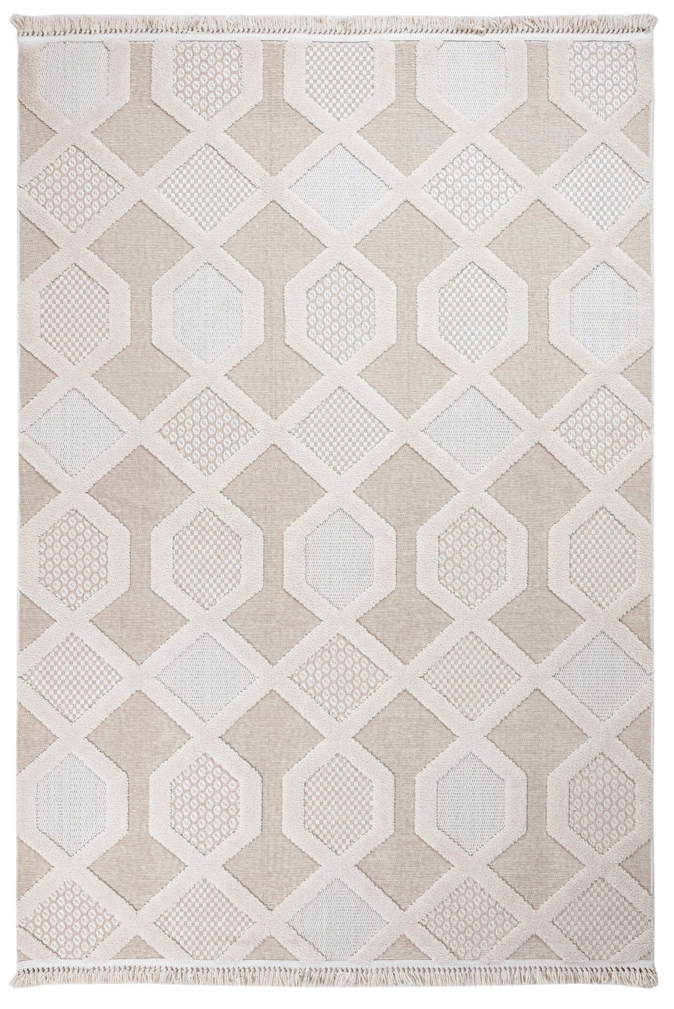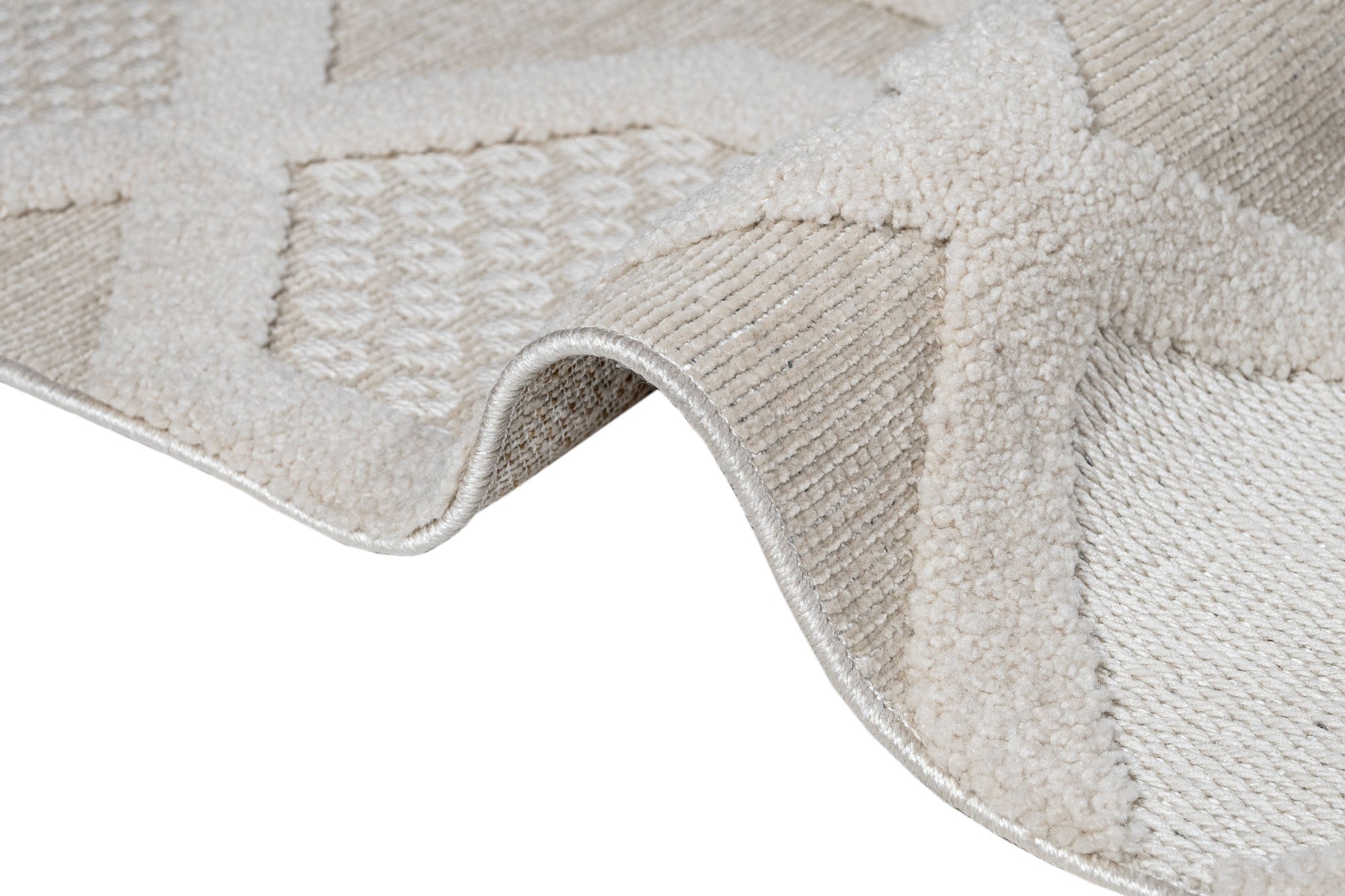 Chenille Area Rug - Beige Geometric Machine Made Rug with Cotton Base