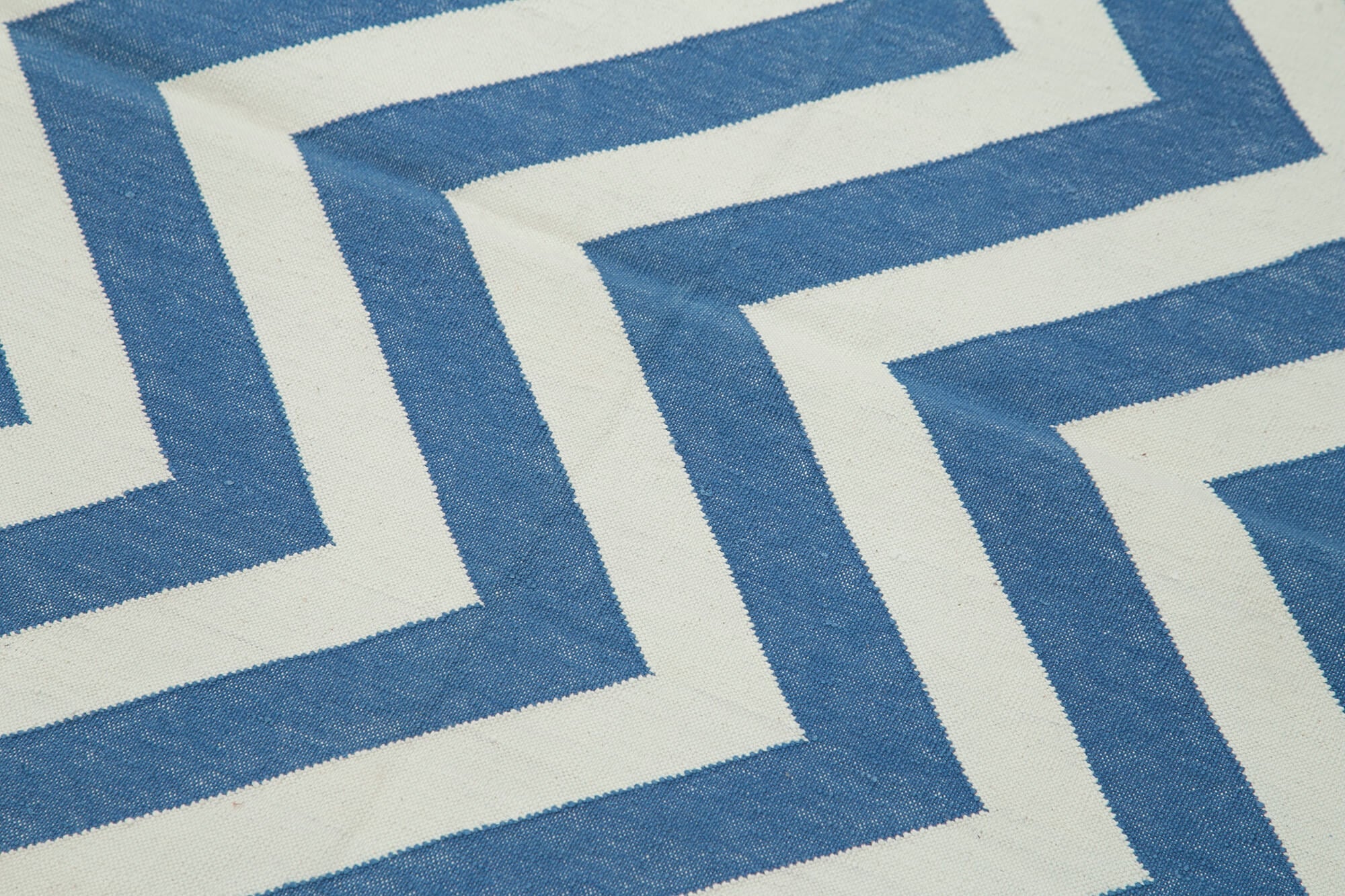 Handmade Area Rug – Blue Geometric Cotton Wool Turkish Carpet 3'7''x5'5''