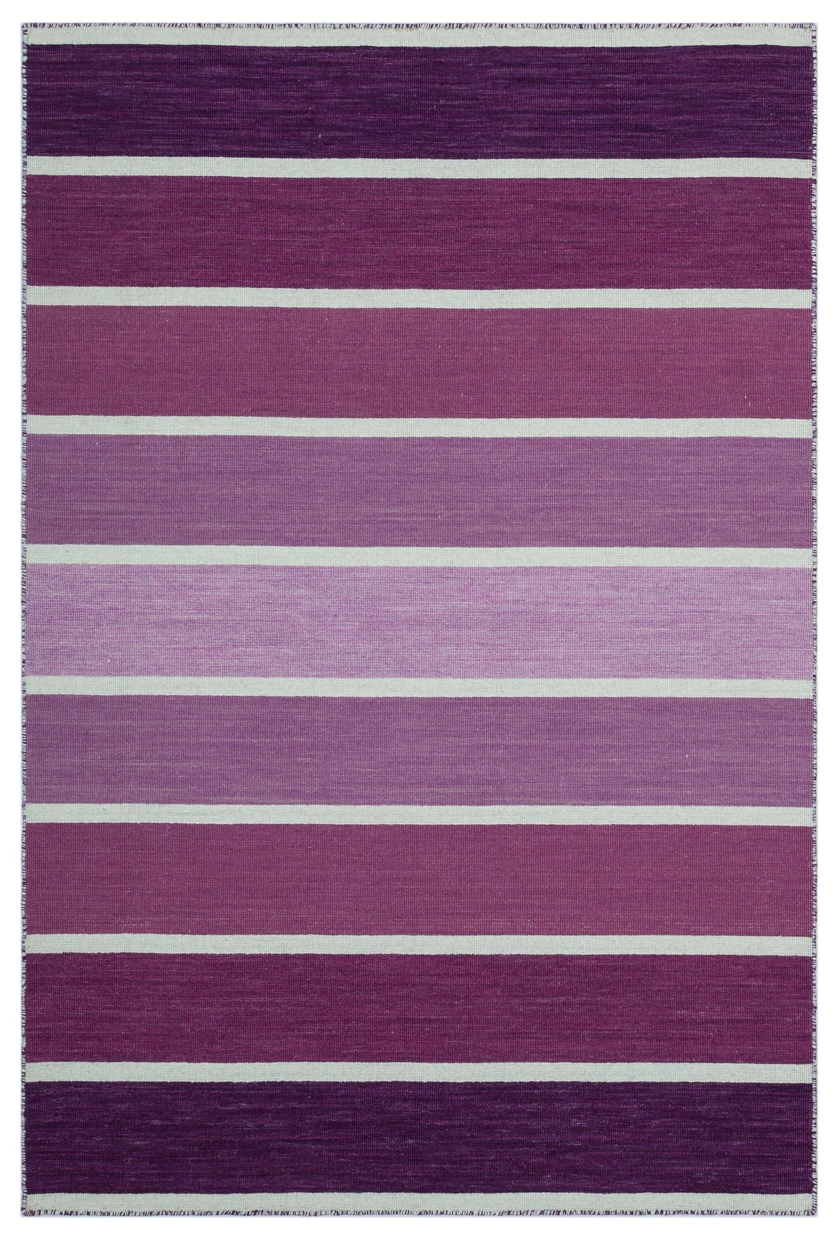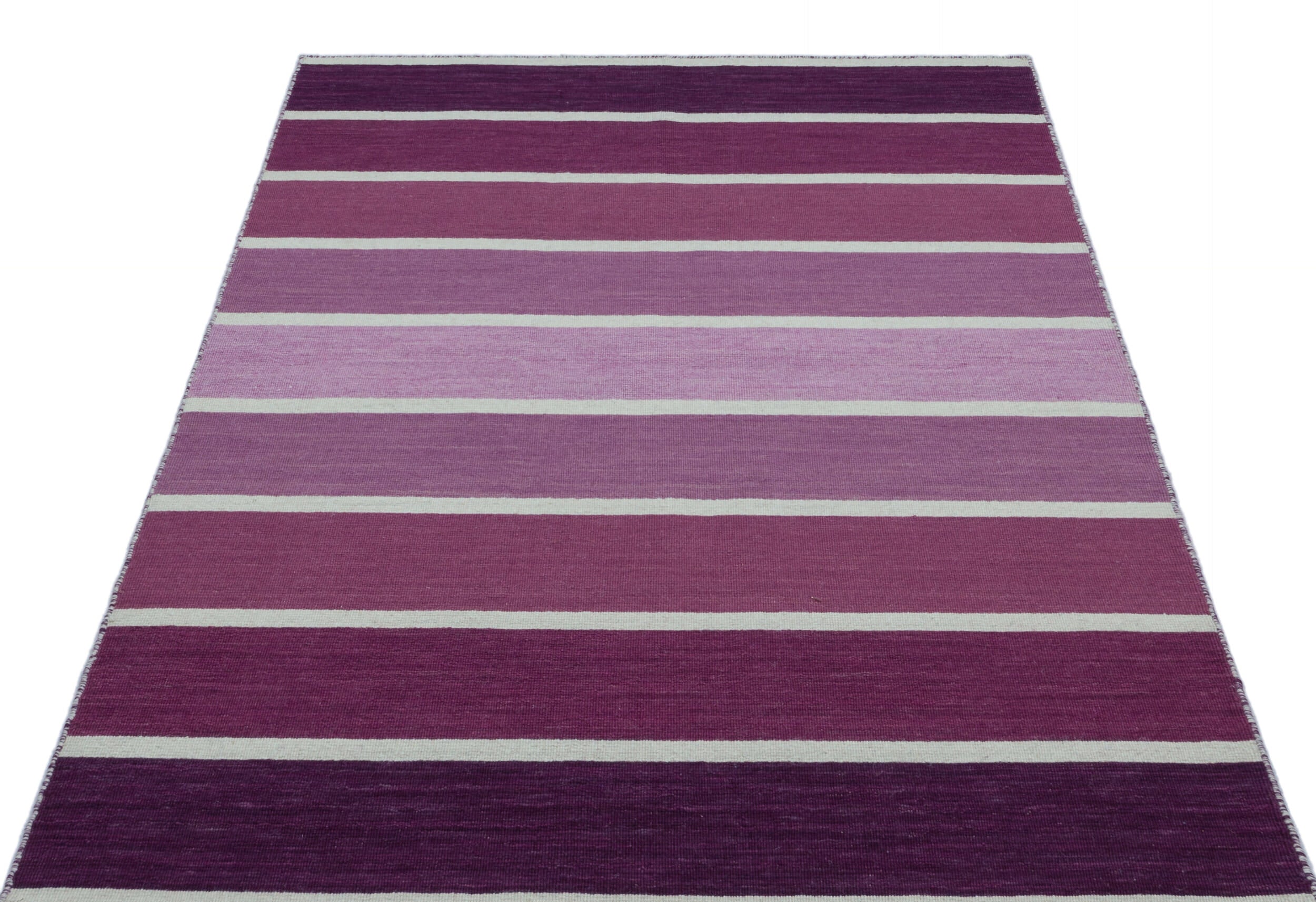 Girit 26752 Purple Striped Wool Handmade Area Rug 4'0" x 6'0"