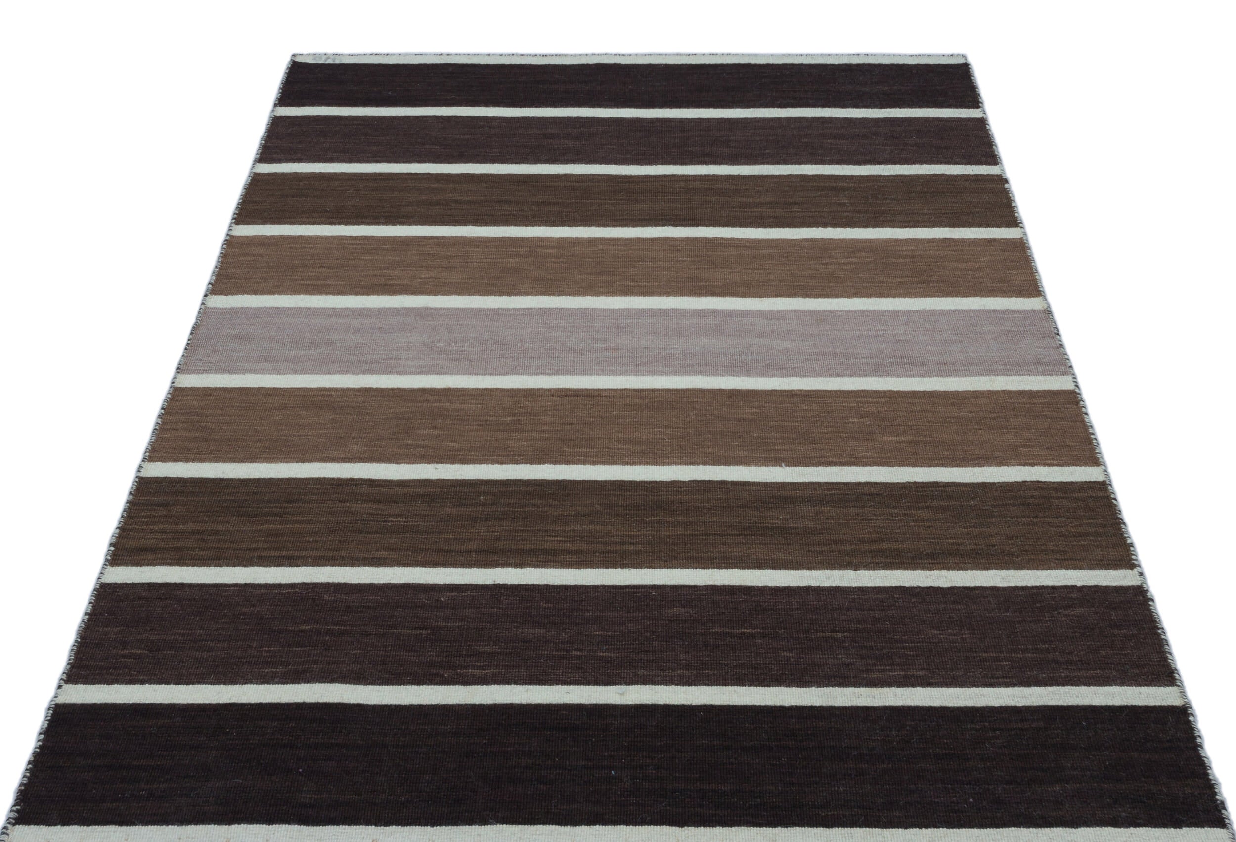 Girit 26756 Beige Striped Wool Handmade Area Rug 4'0" x 5'11"