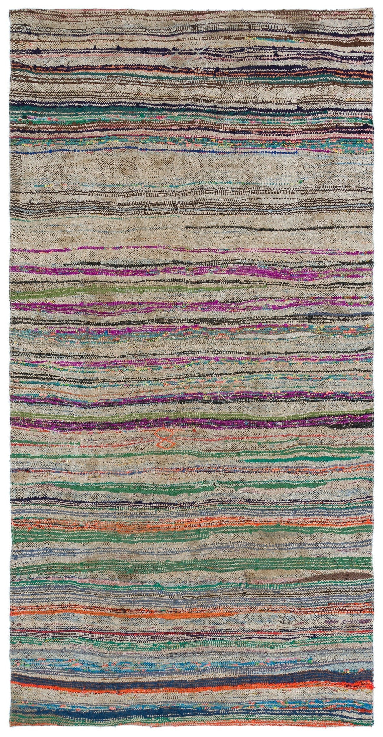 Girit 31715 Beige Striped Wool Handmade Area Rug 4'6" x 8'4"