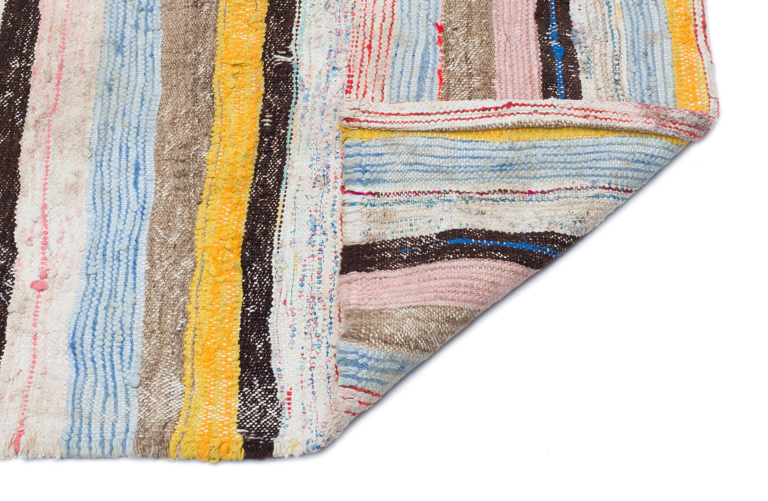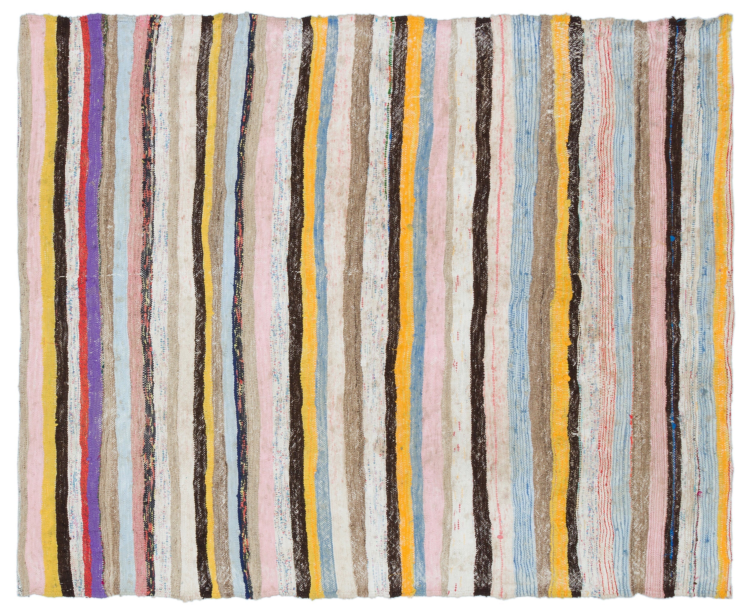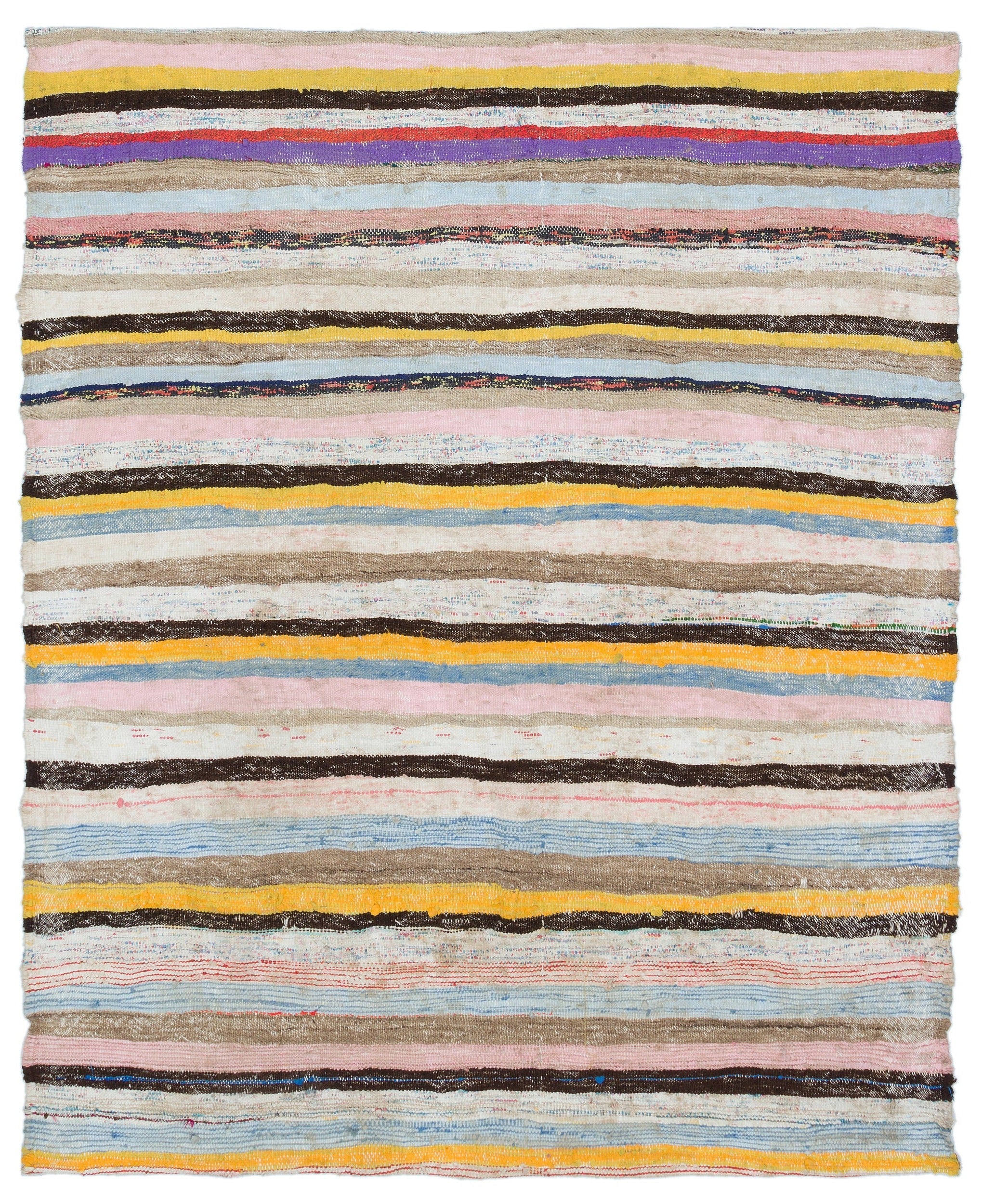 Girit Beige Striped Wool Handmade Area Rug 4'6" x 5'7"