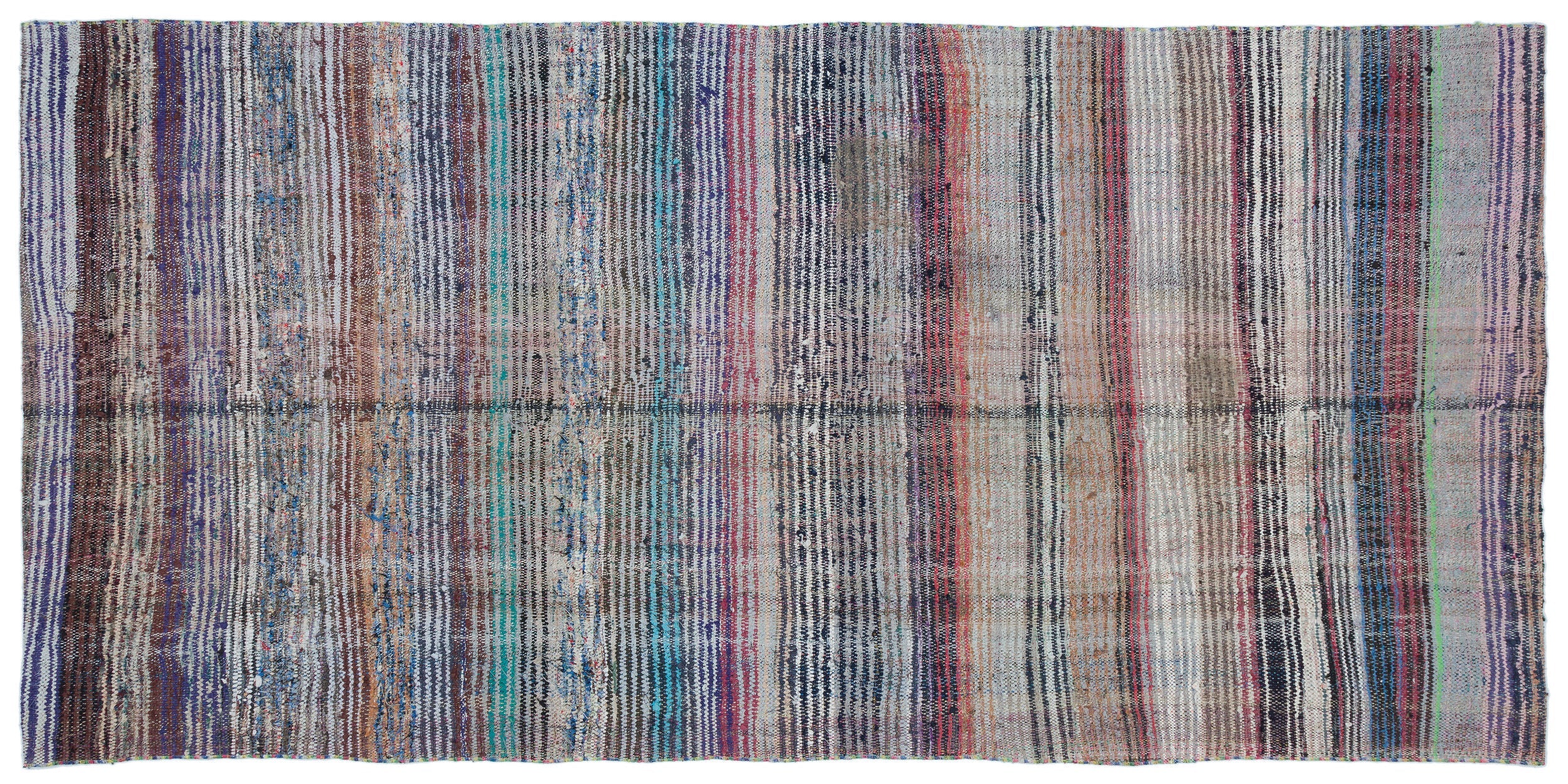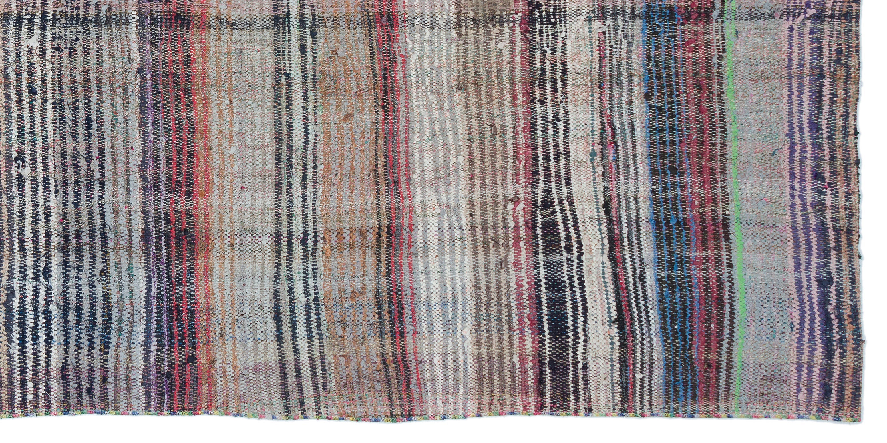 Girit Beige Striped Wool Handmade Area Rug 4'6" x 9'3"