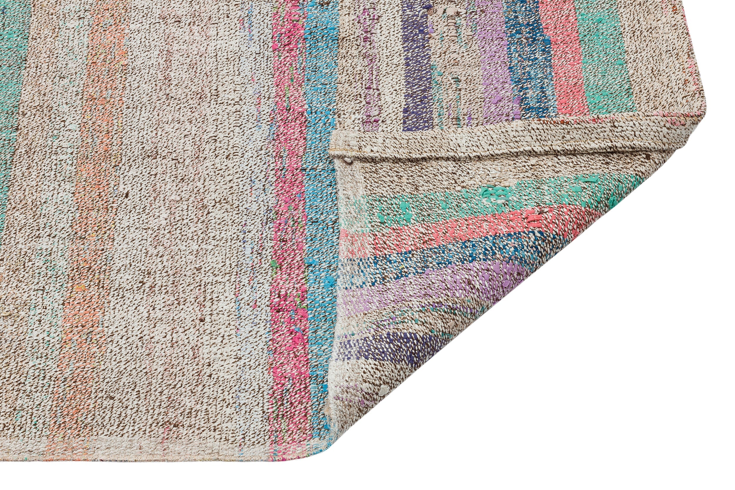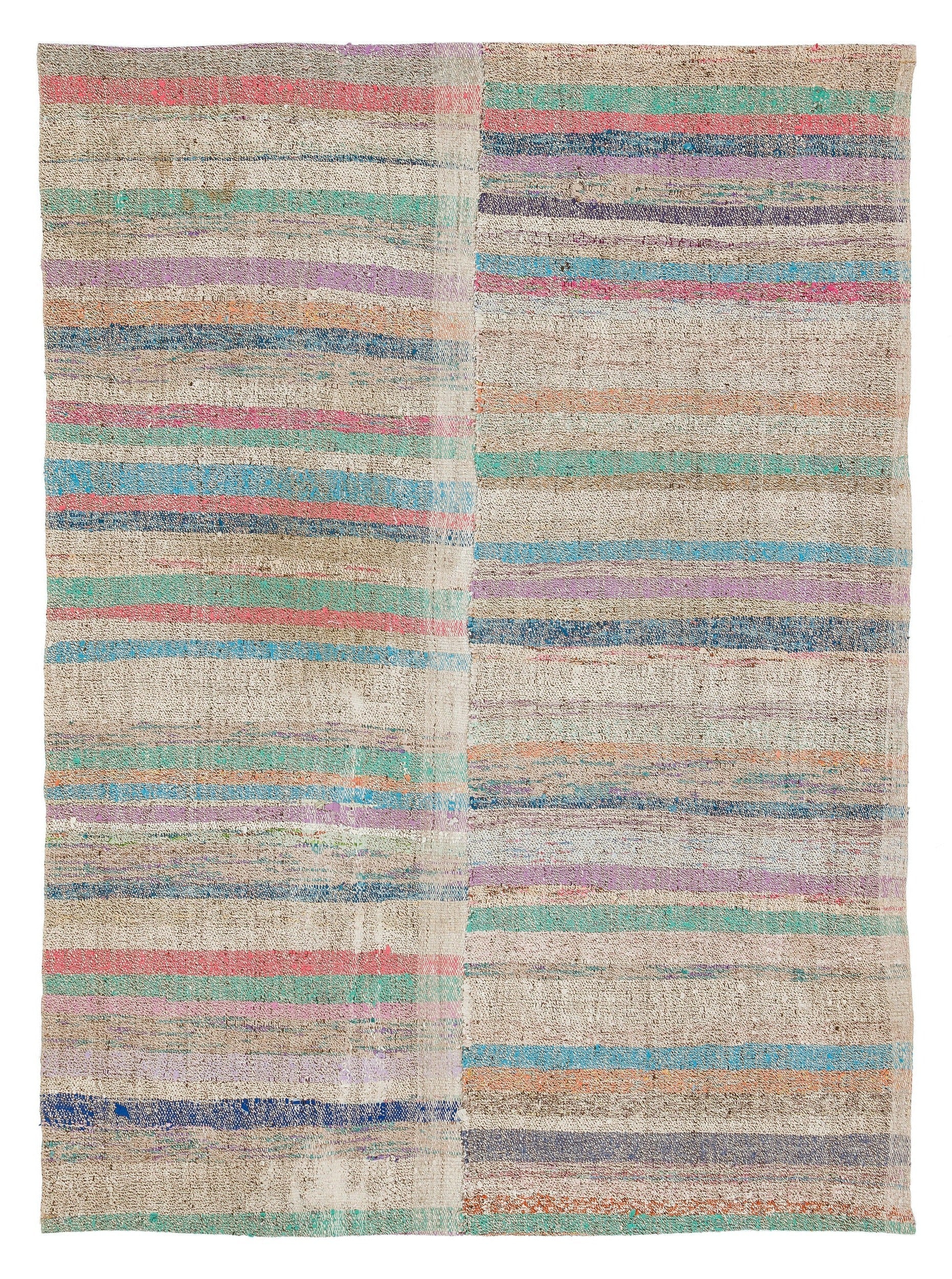 Girit Beige Striped Wool Handmade Area Rug 4'8" x 6'5"