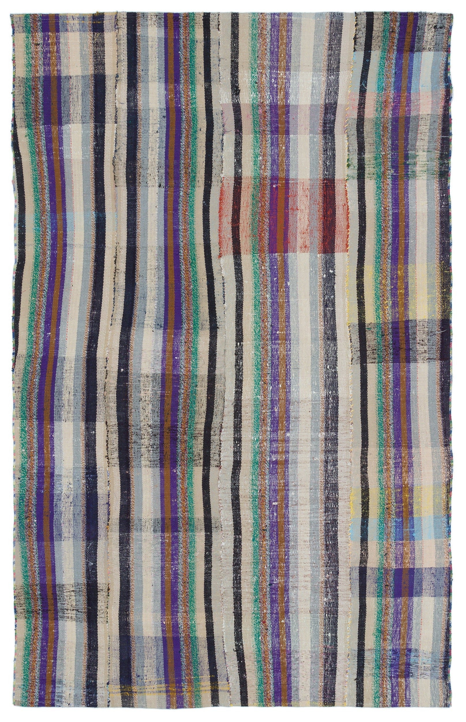 Girit Beige Striped Wool Handmade Area Rug 4'10" x 7'7"