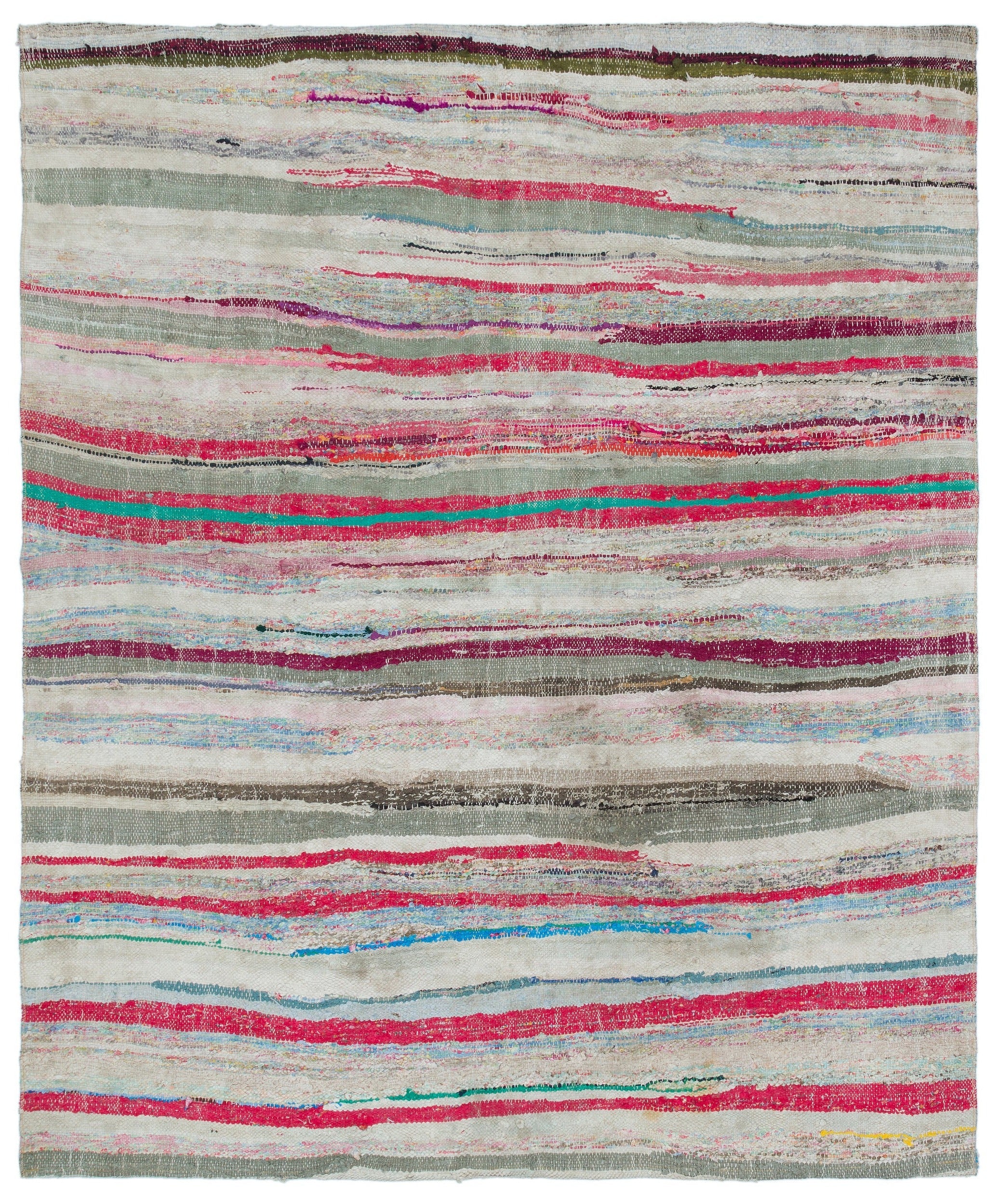 Girit Beige Striped Wool Handmade Area Rug 5'5" x 6'5"