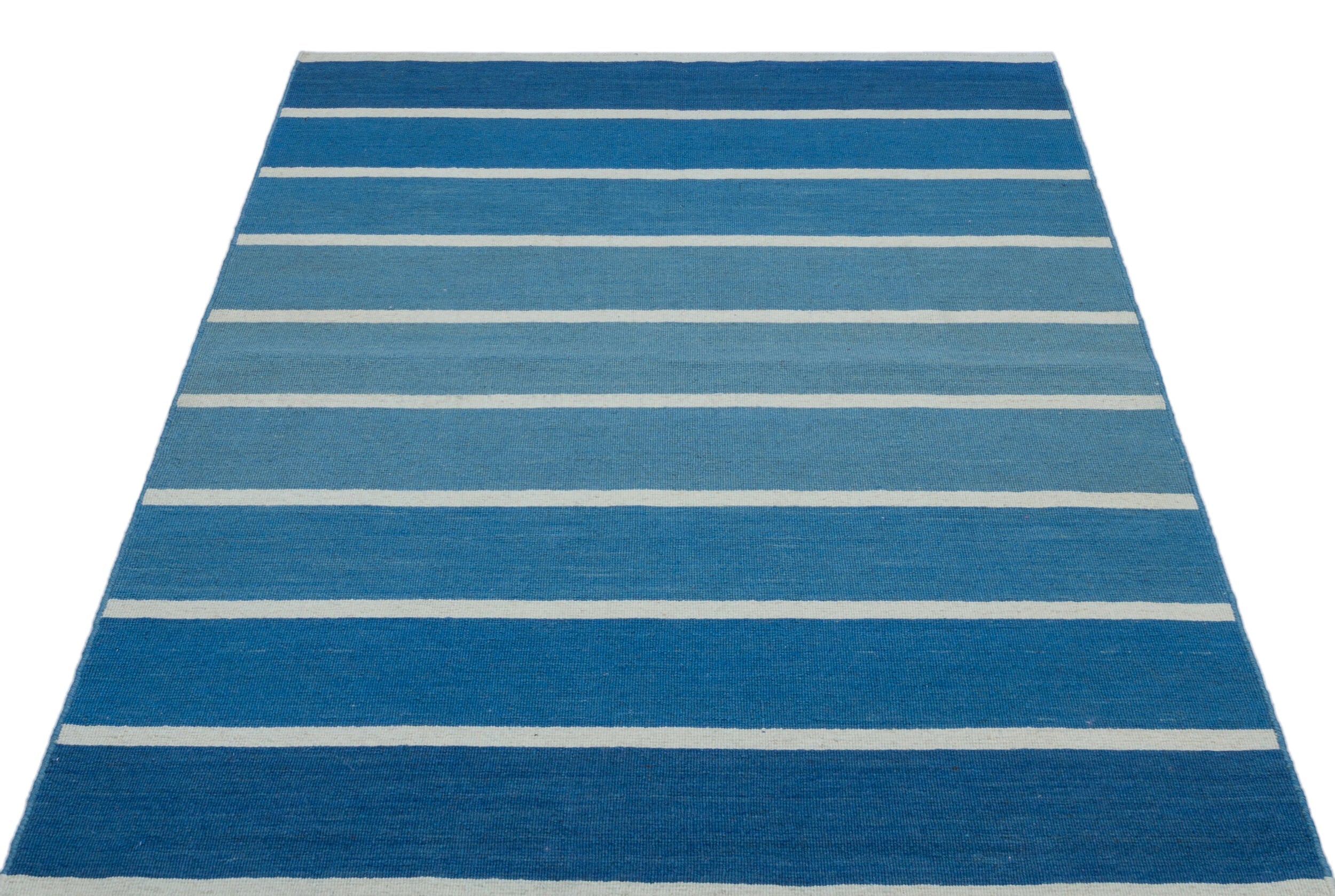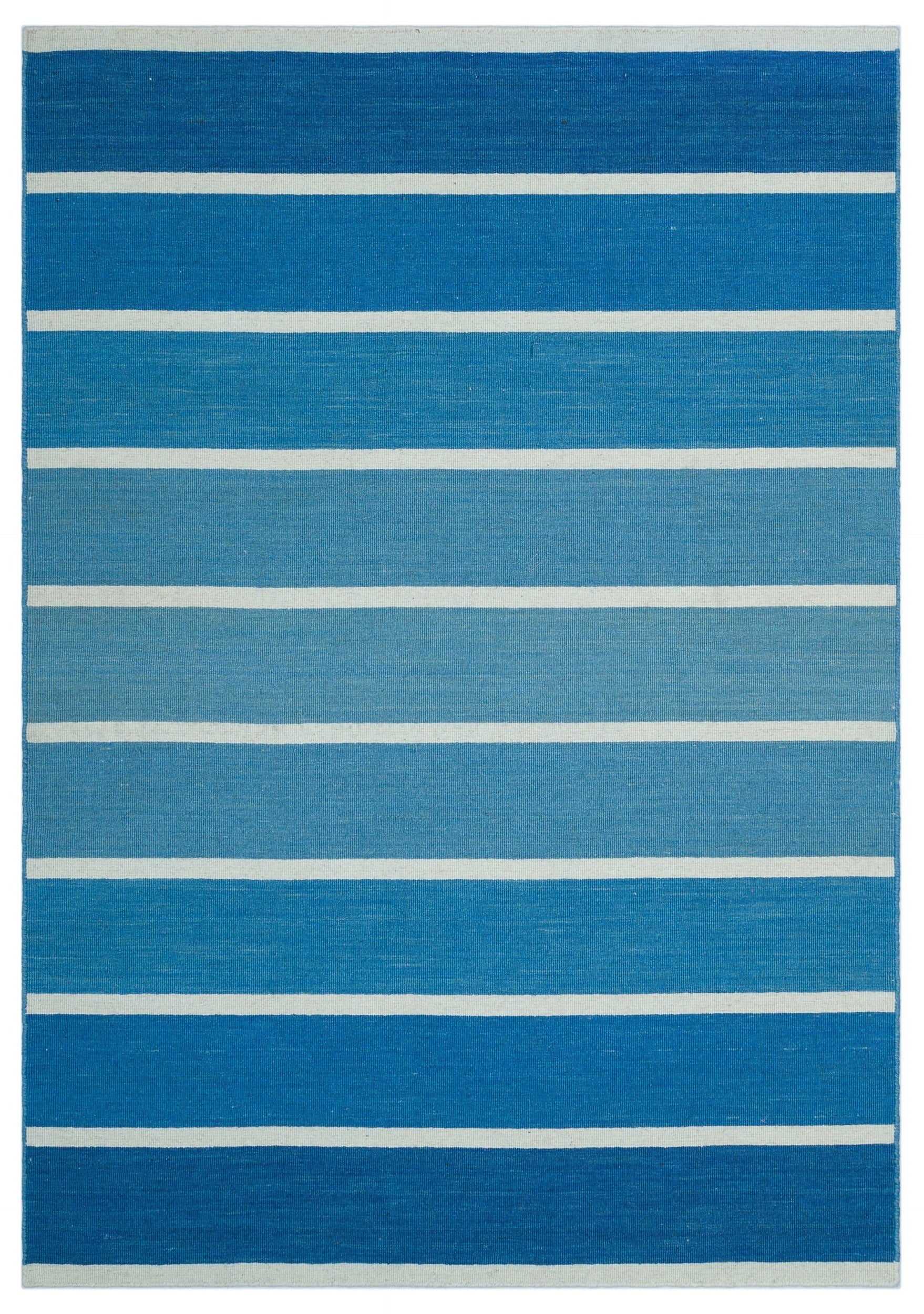 Girit Blue Striped Wool Handmade Area Rug 4'0" x 5'10"