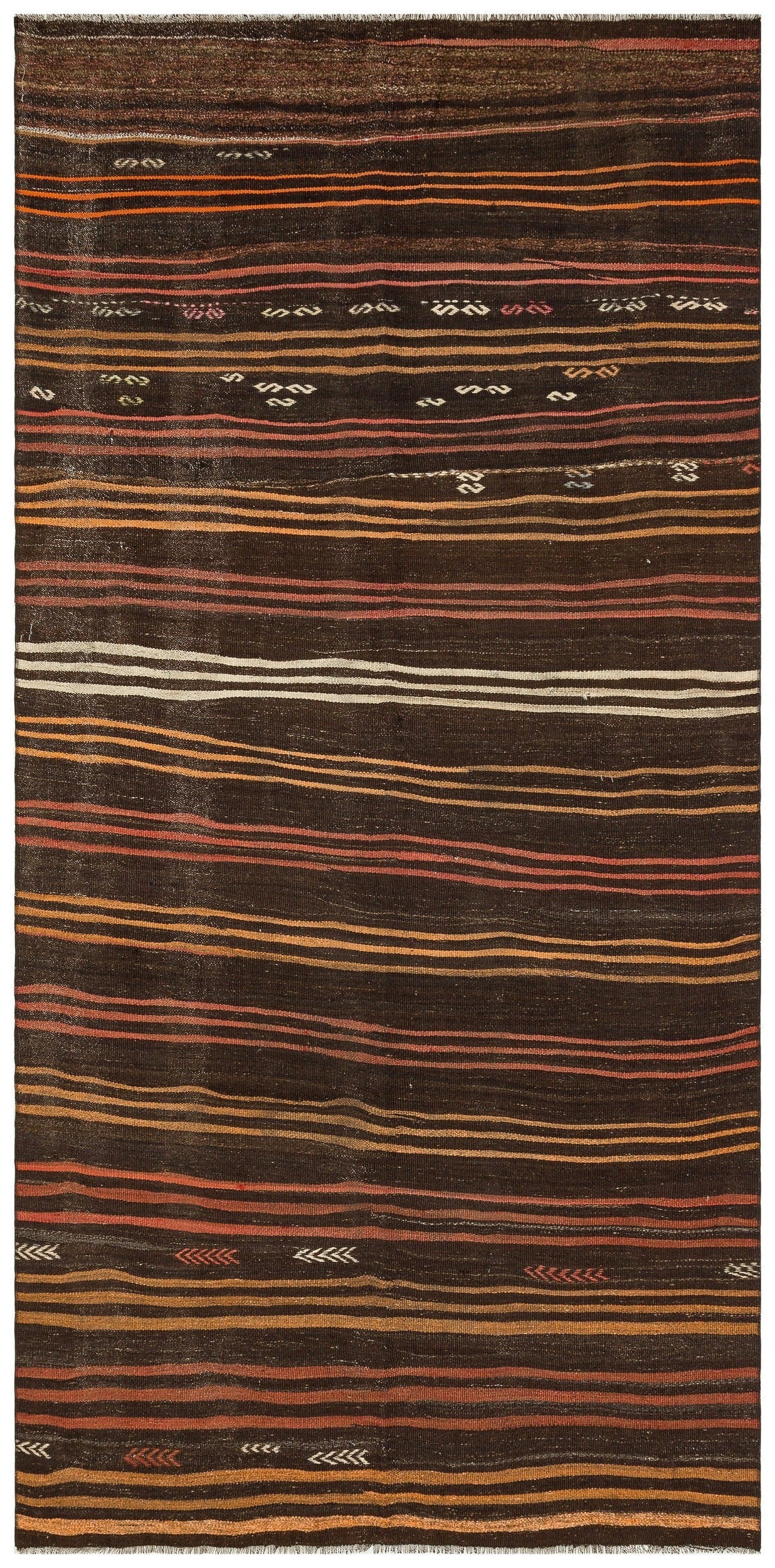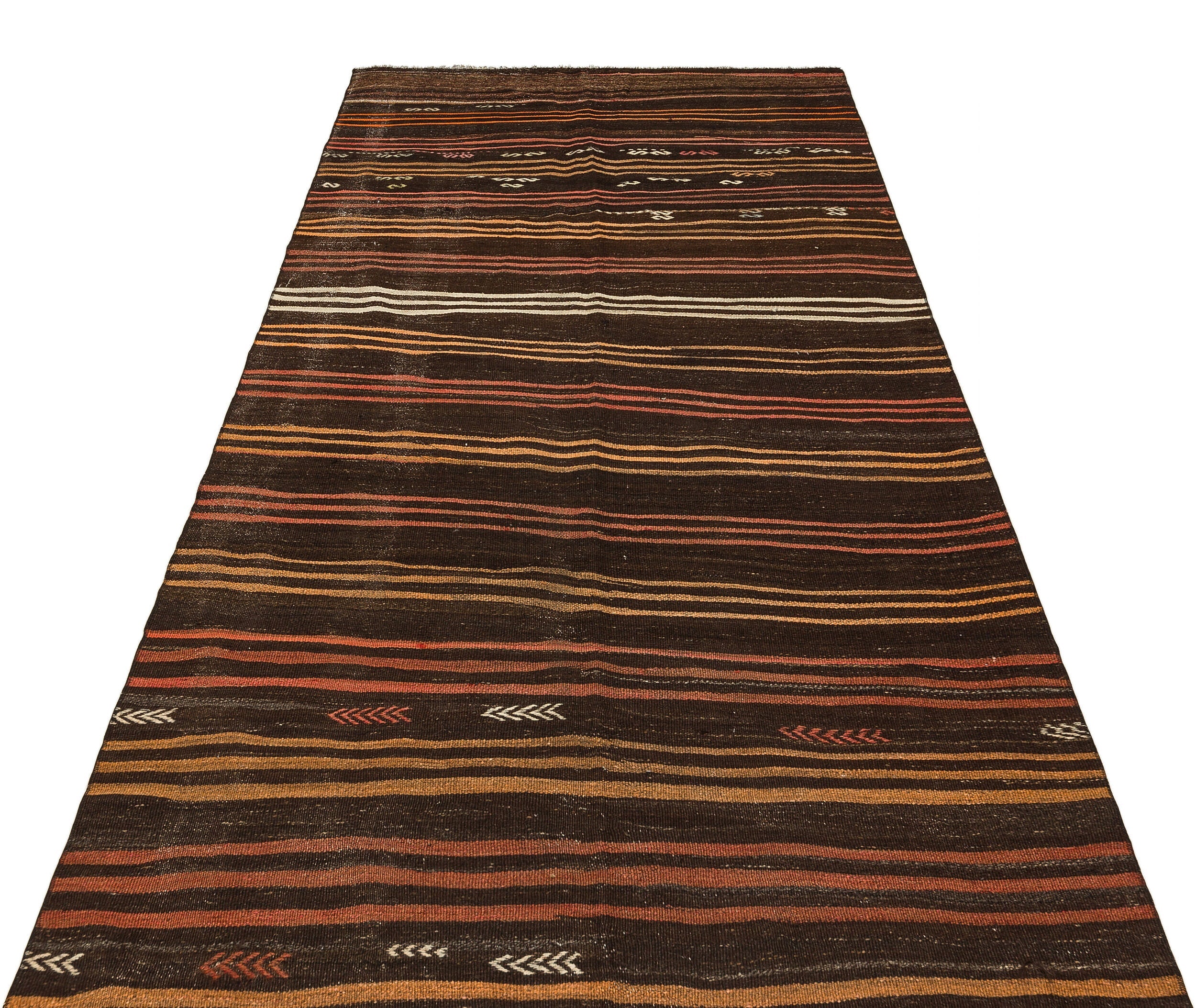 Girit Brown Striped Wool Handmade Area Rug 4'6" x 9'0"