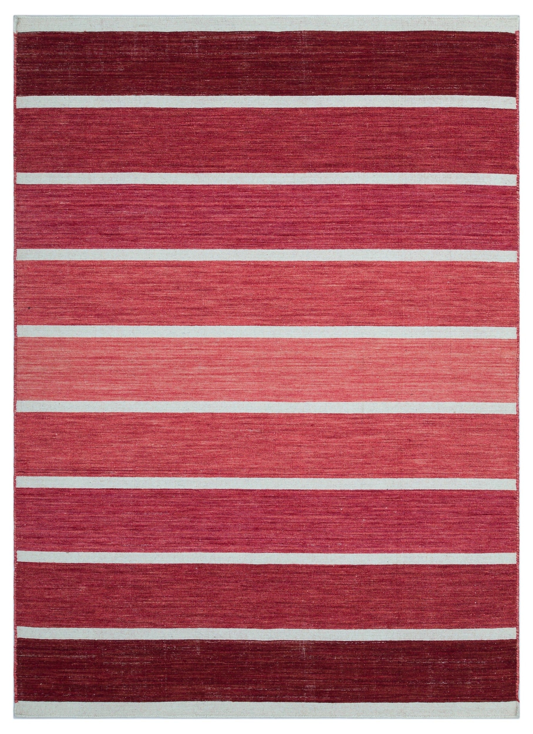 Girit Red Striped Wool Handmade Area Rug 4'2" x 5'11"