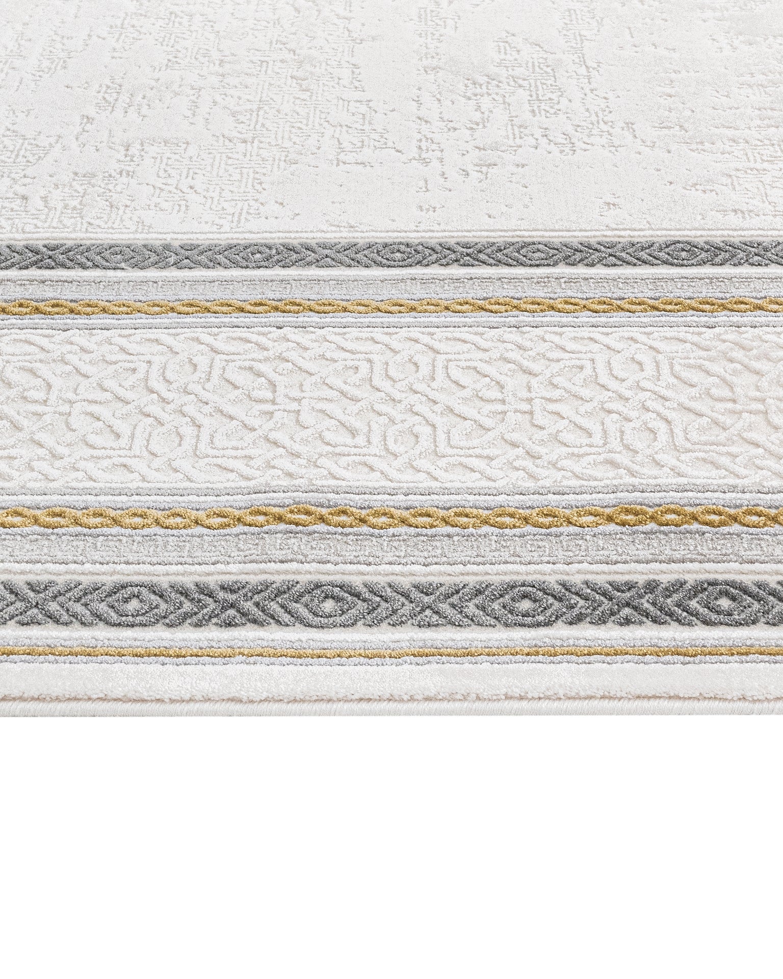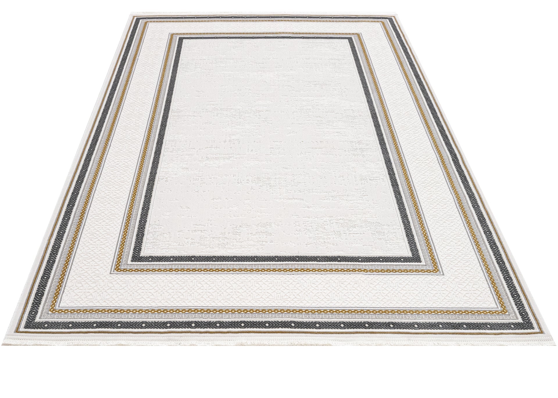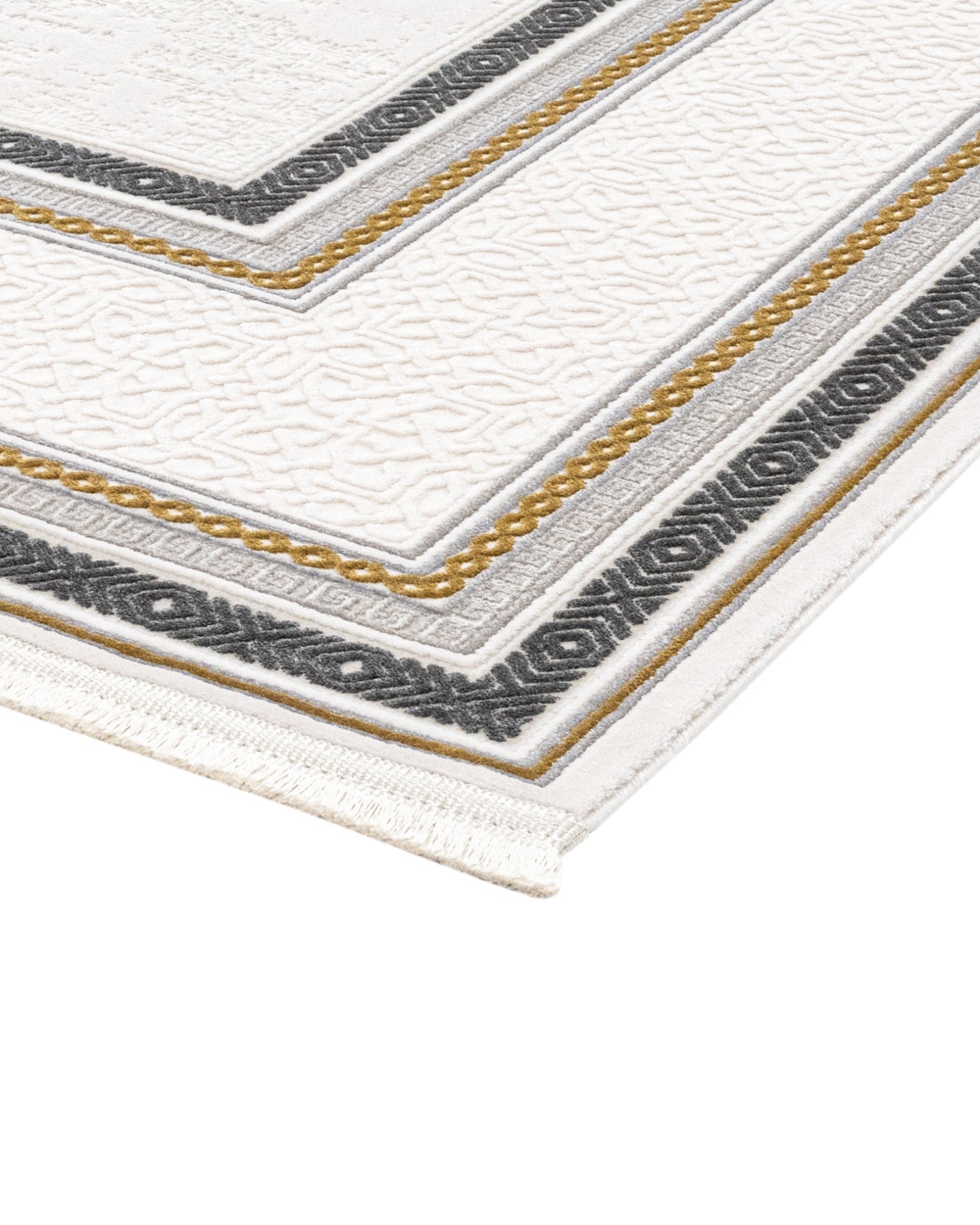 Grey Area Rug - Machine Made Rug with Framed Pattern | Soft Touch Acrylic, 8mm Pile Height
