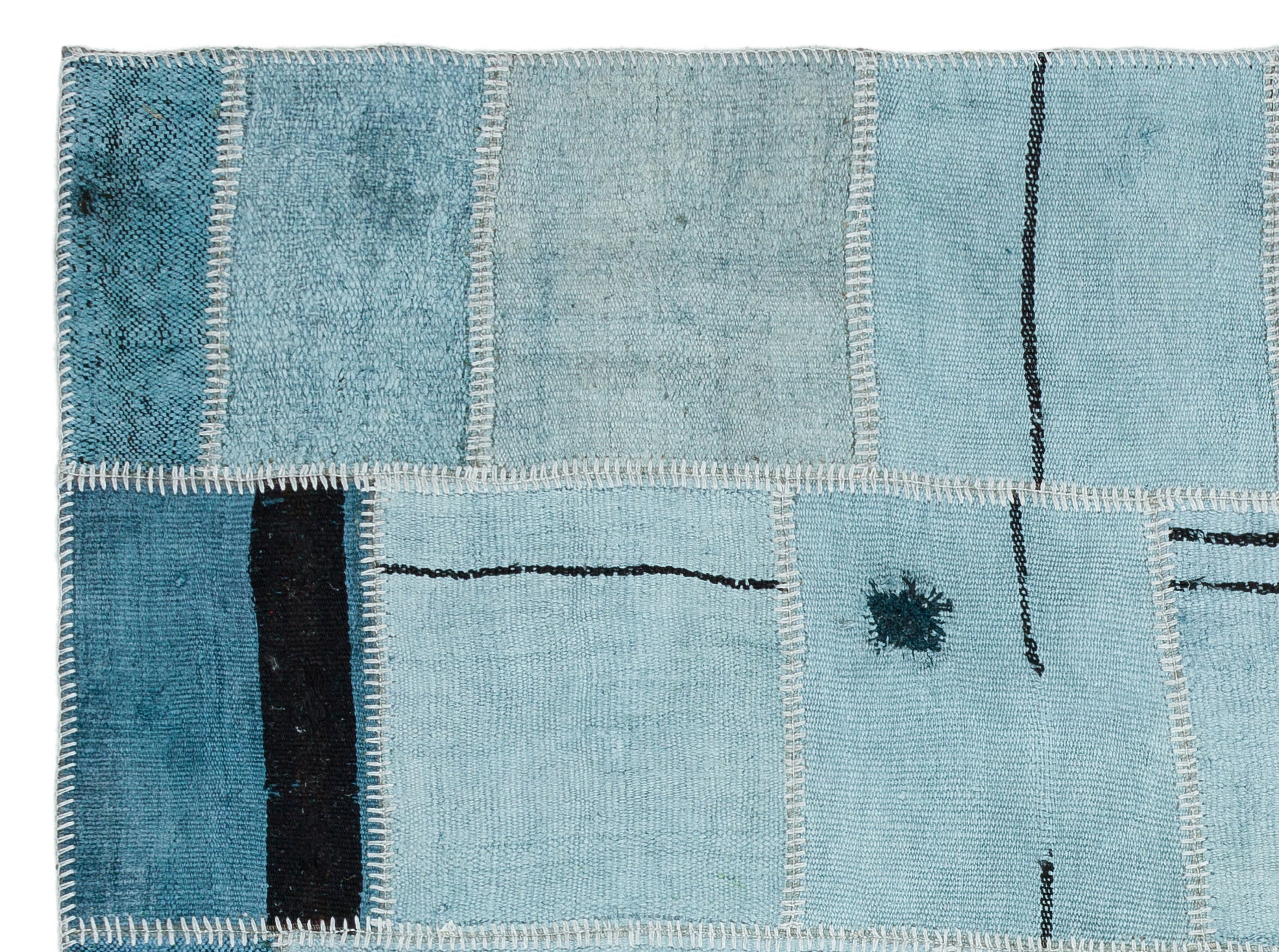 Teselya Turquoise Patchwork Wool Handmade Area Rug 5'0" x 6'9"
