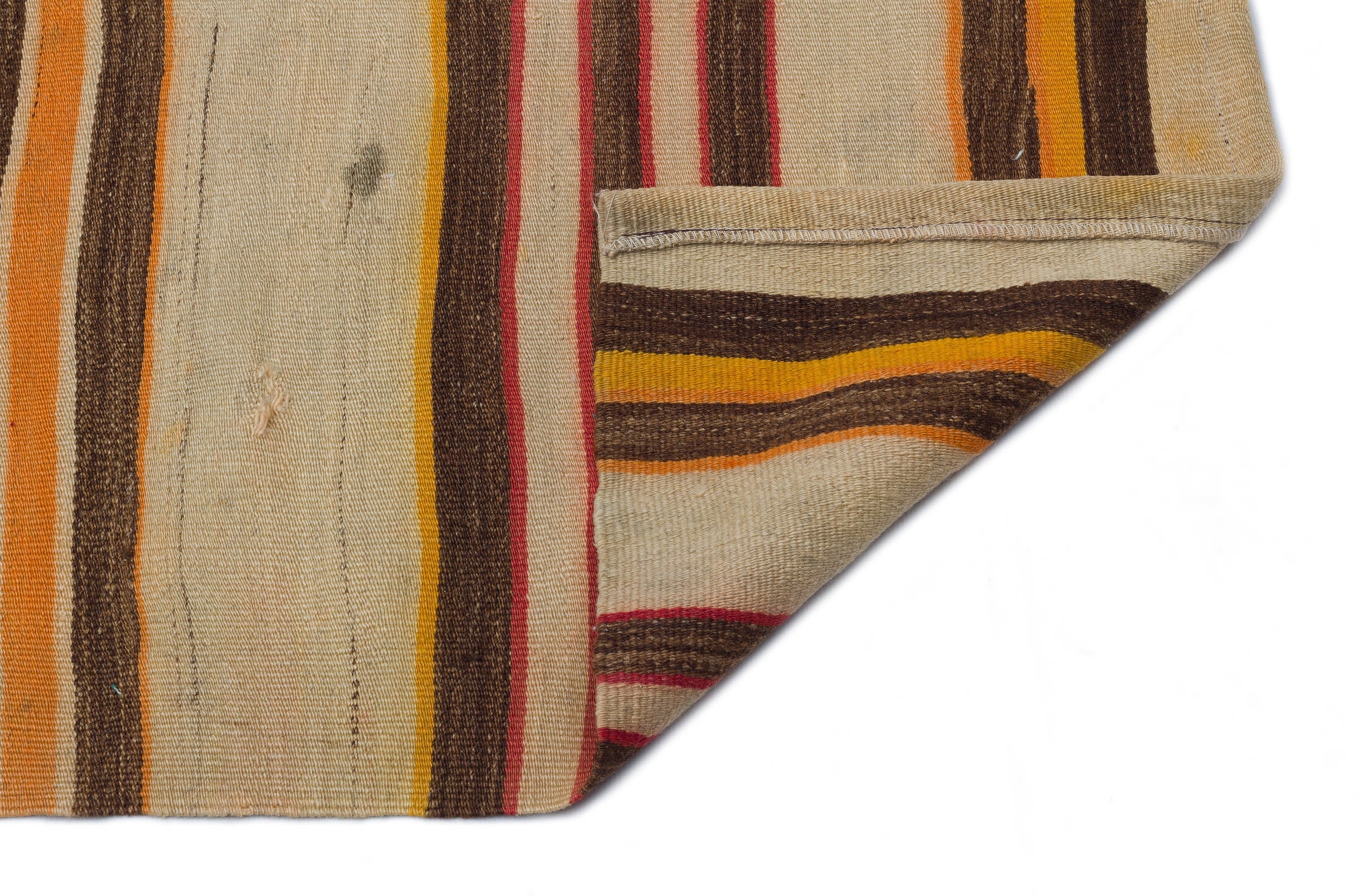 Girit Beige Striped Wool Handmade Area Rug 5'0" x 8'9"