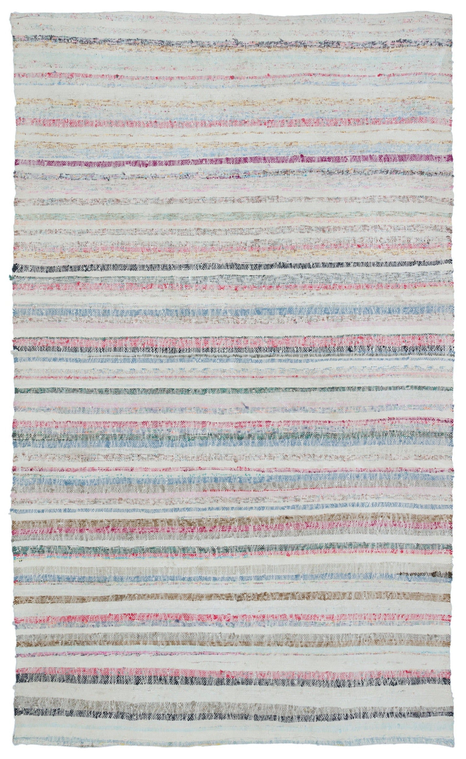 Girit Beige Striped Wool Handmade Area Rug 5'6" x 9'2"