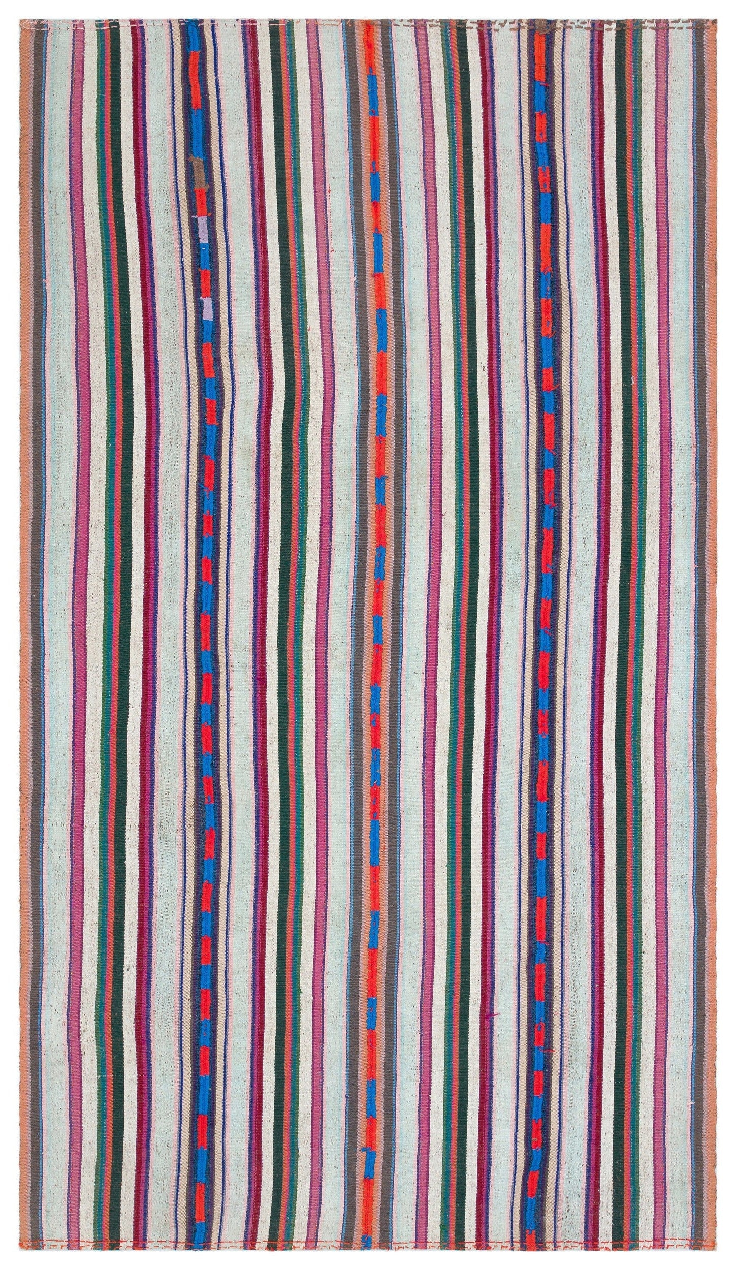 Girit Beige Striped Wool Handmade Area Rug 5'8" x 9'9"