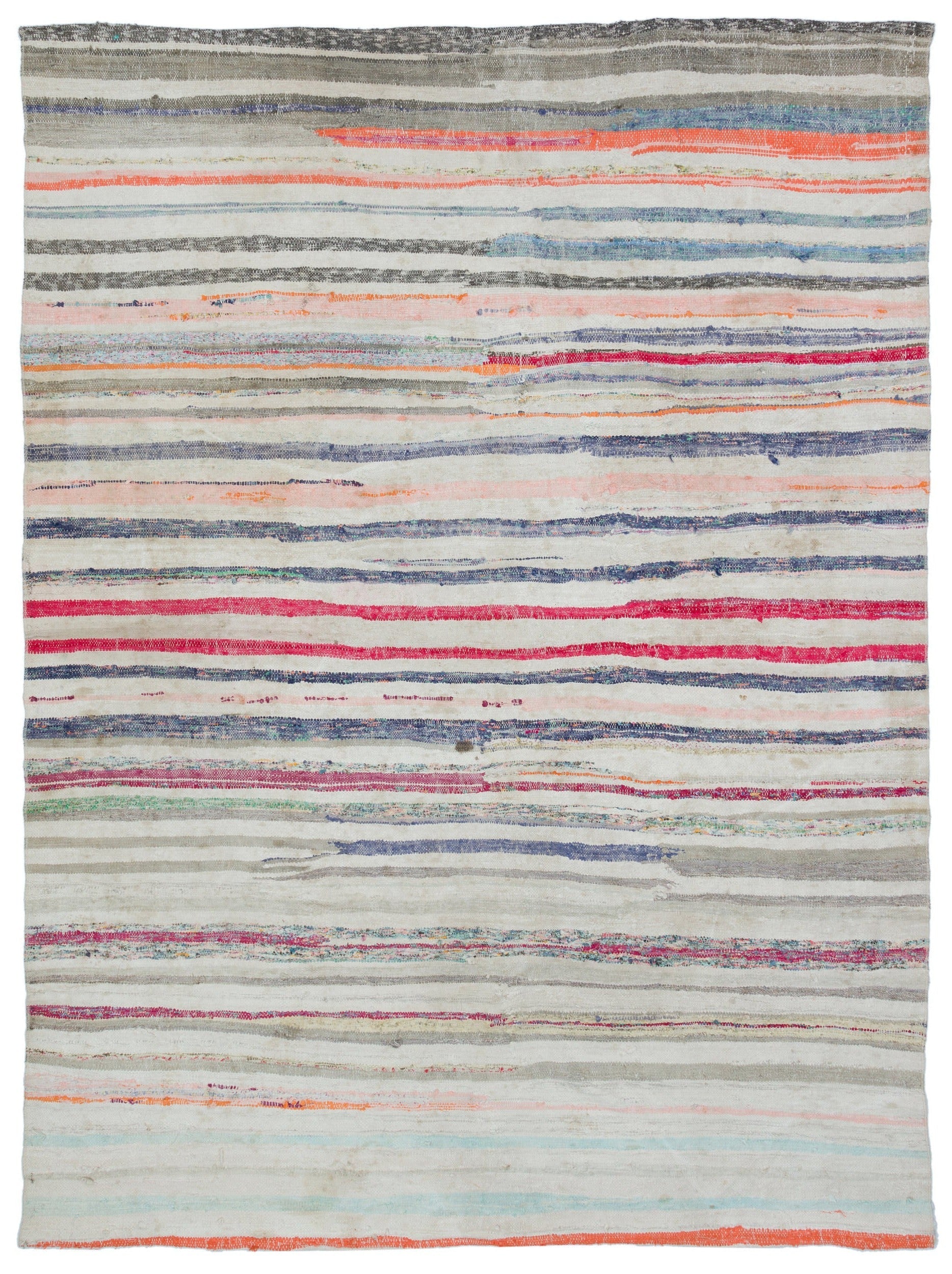 Girit Beige Striped Wool Handmade Area Rug 6'8" x 8'10"