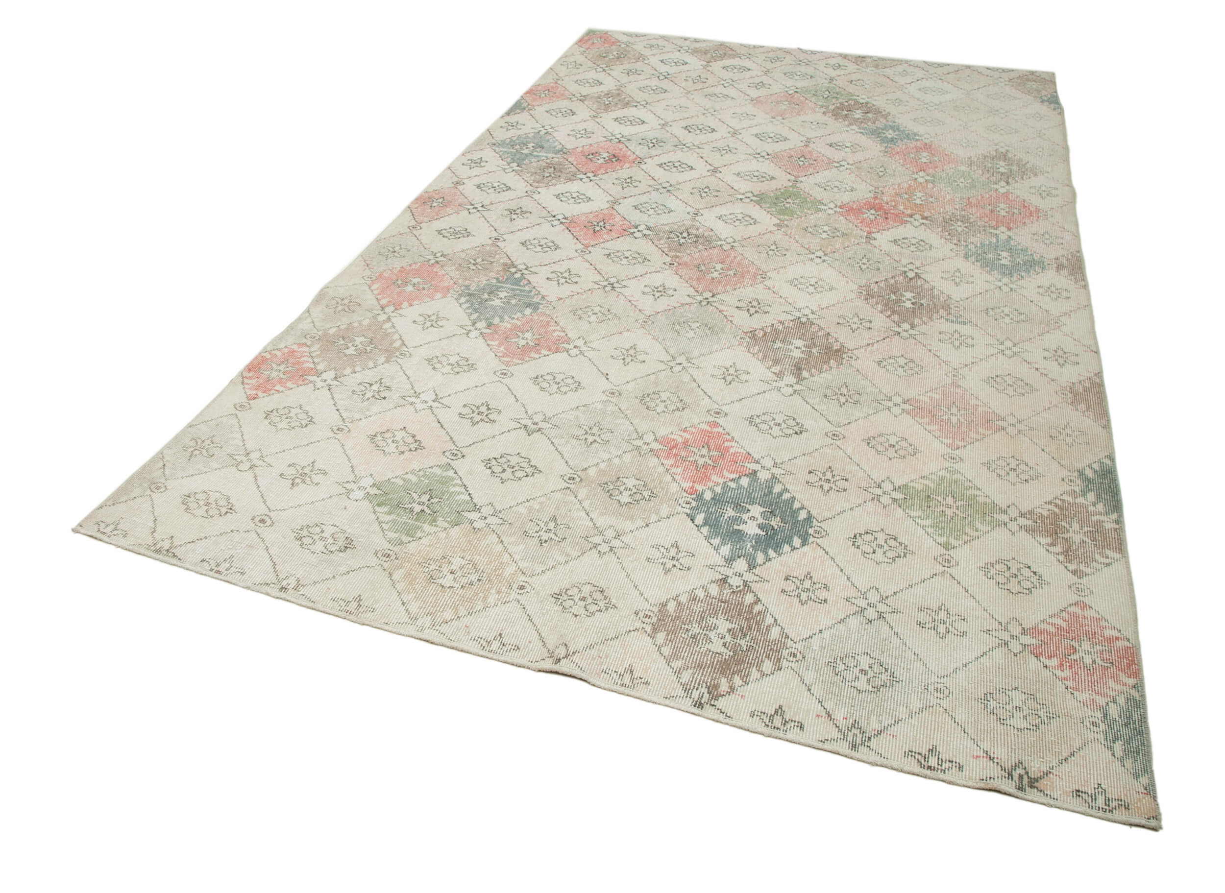 This handmade area rug is a checkered kilim carpet crafted from natural cotton and wool fibers, designed to bring rustic home decor charm and bohemian style rug appeal to your living space. The beige area rug measures 6 feet by 10 feet 4 inches, making it an ideal size for medium to large rooms. Each hand woven rug is a traditional Turkish carpet, hand knotted with care to ensure durability and authentic craftsmanship. The vintage wool carpet is made from materials aged 30 to 70 years, carefully selected, cleaned, and washed using special techniques that neutralize original colors while enhancing the natural shades of the fibers.
