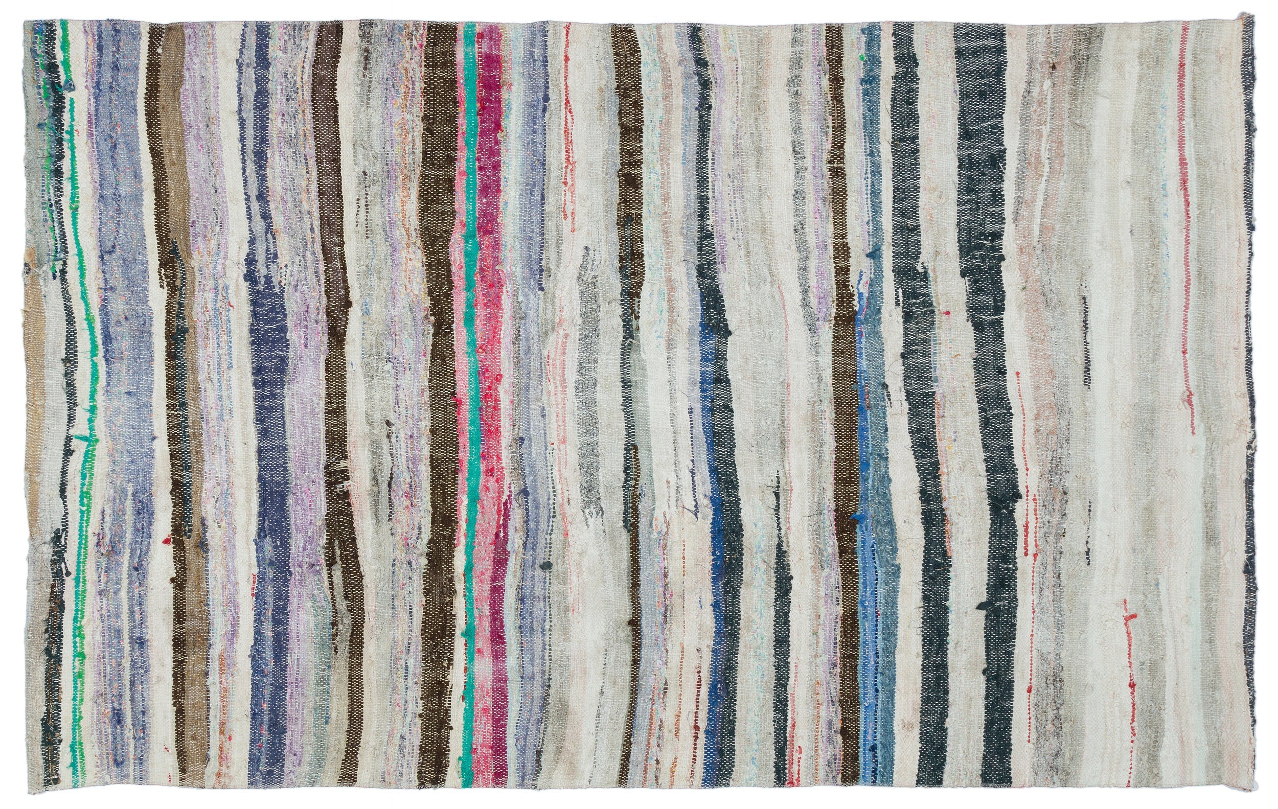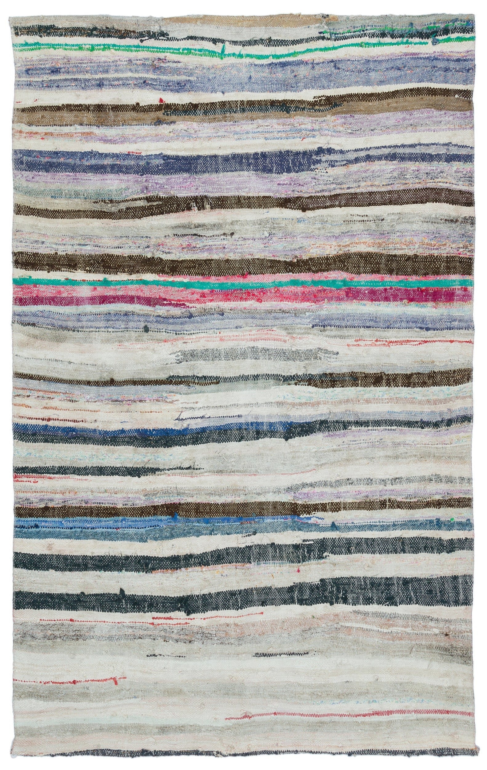 Girit 32009 Beige Striped Wool Handmade Area Rug 5'1" x 7'10"