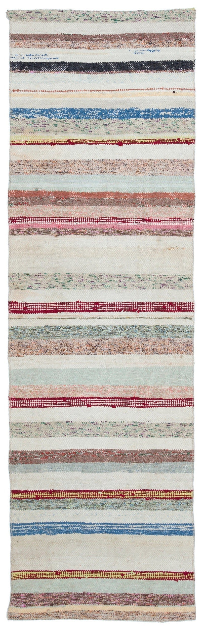 Girit Beige Striped Wool Handmade Area Rug 2'2" x 7'3"