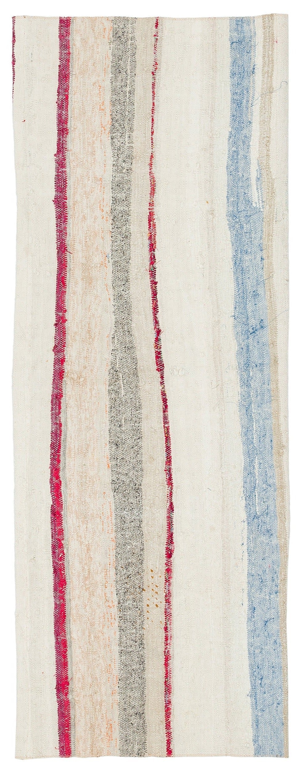 Girit Beige Striped Wool Handmade Area Rug 2'2" x 5'11"