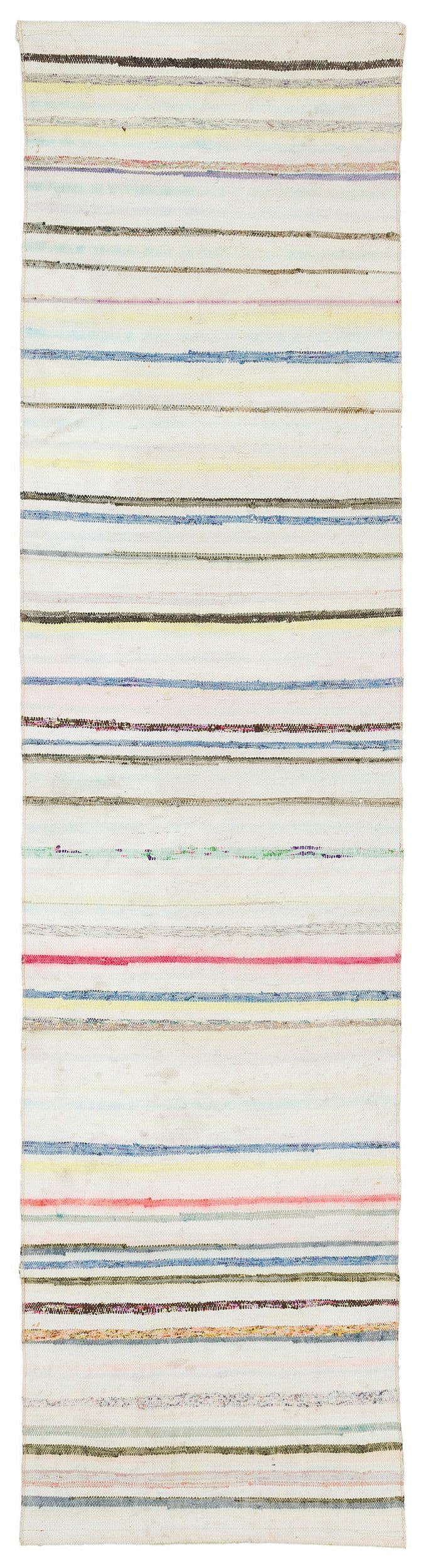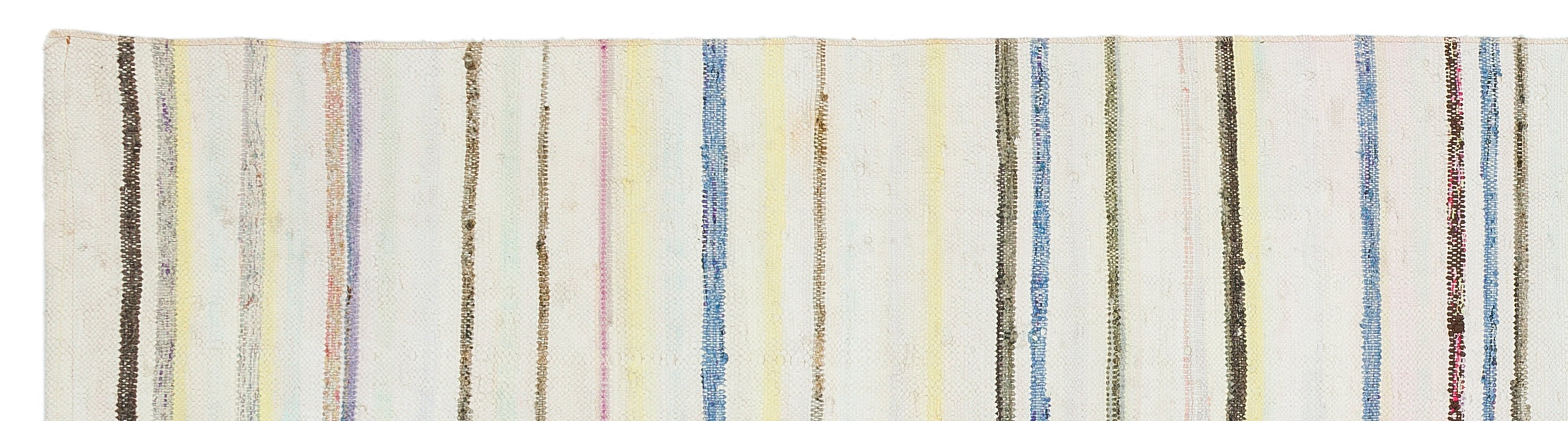 Girit Beige Striped Wool Handmade Area Rug 2'3" x 8'11"