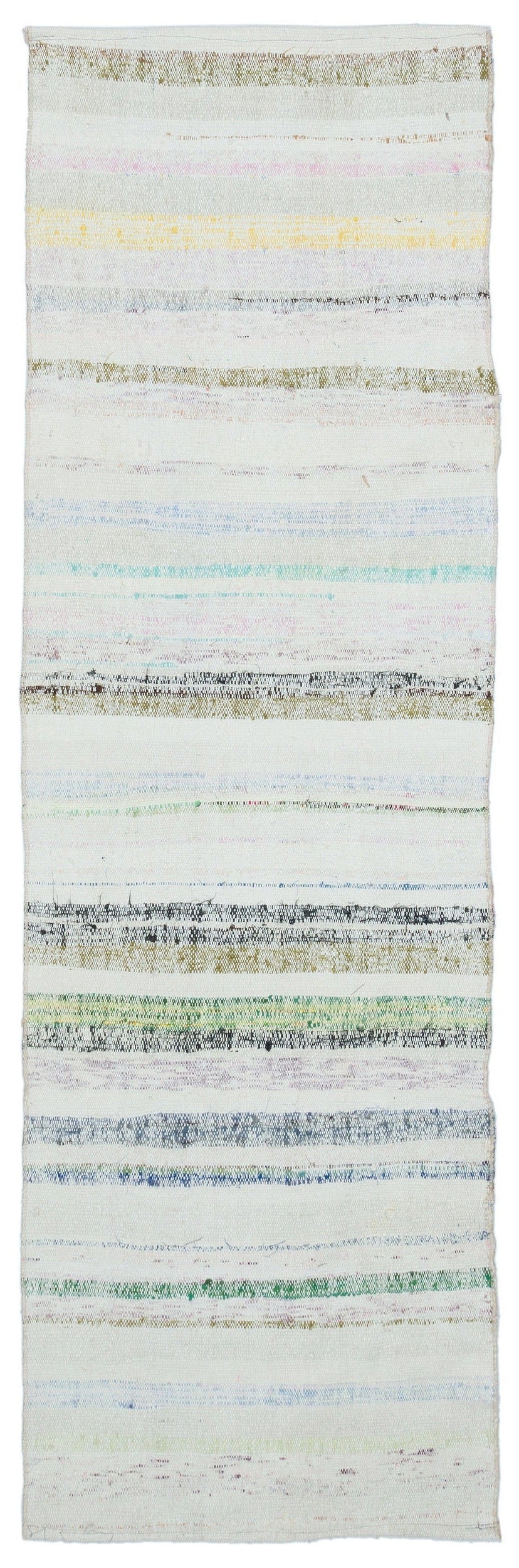 Girit Beige Striped Wool Handmade Area Rug 2'4" x 7'6"