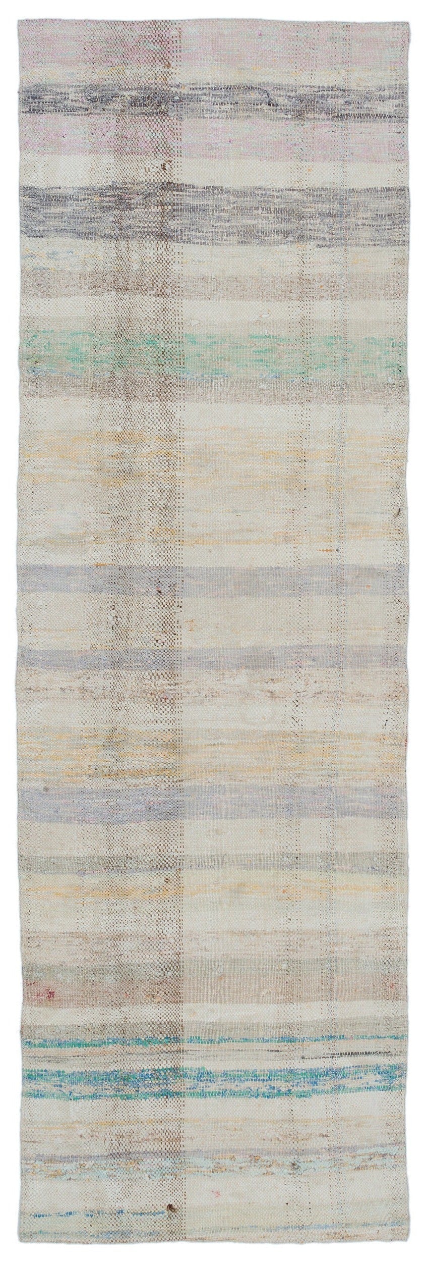 Girit Beige Striped Wool Handmade Area Rug 2'5" x 7'5"